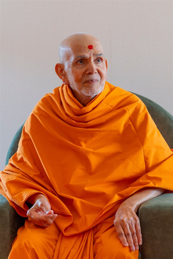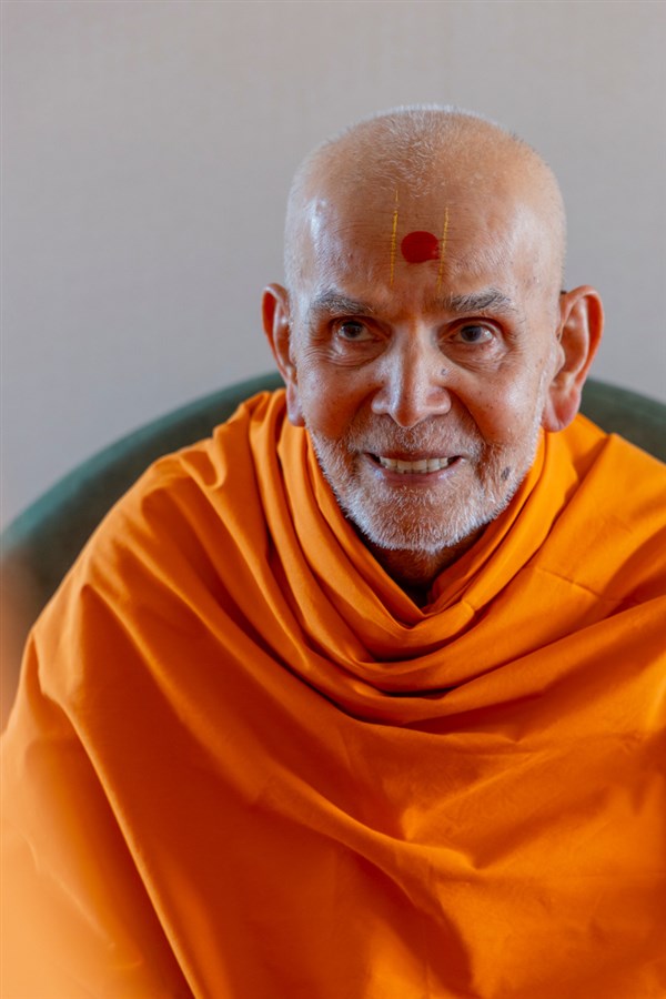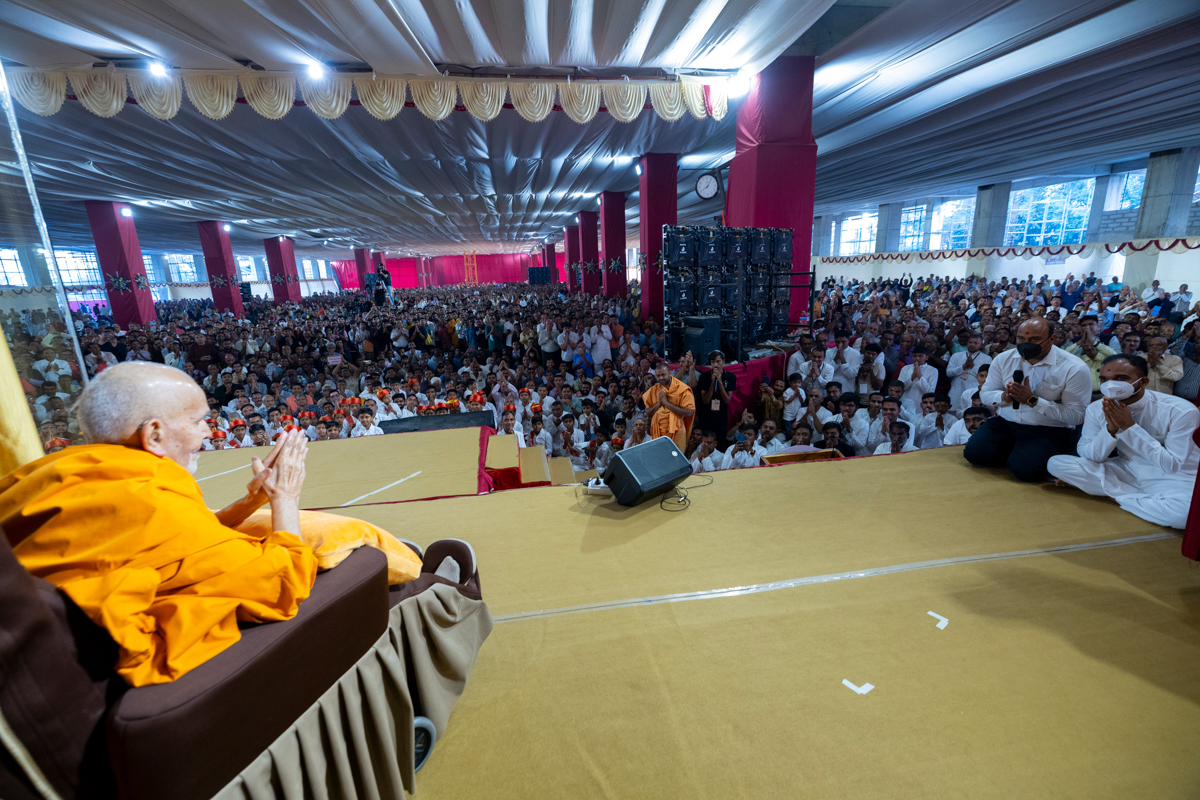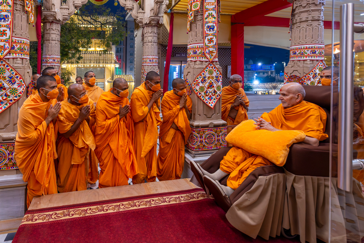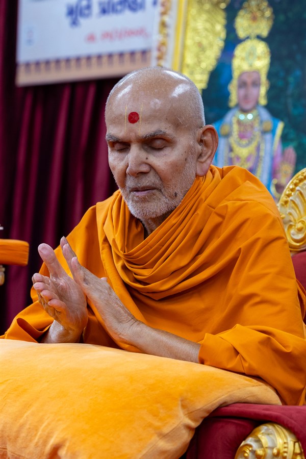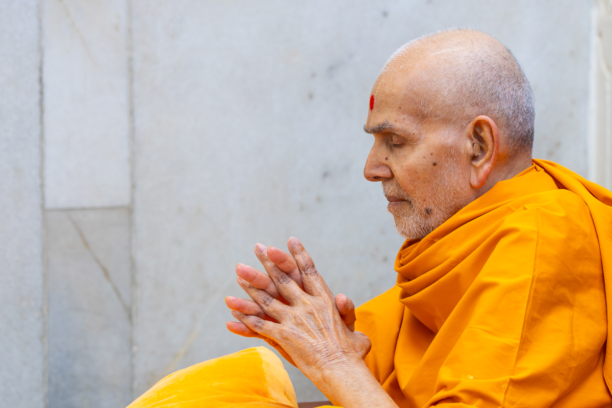 Param Pujya Mahant Swami Maharaj greets all with folded hands