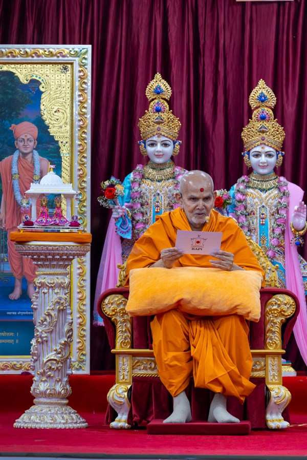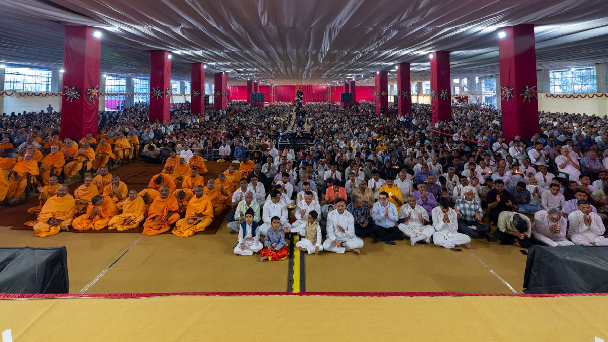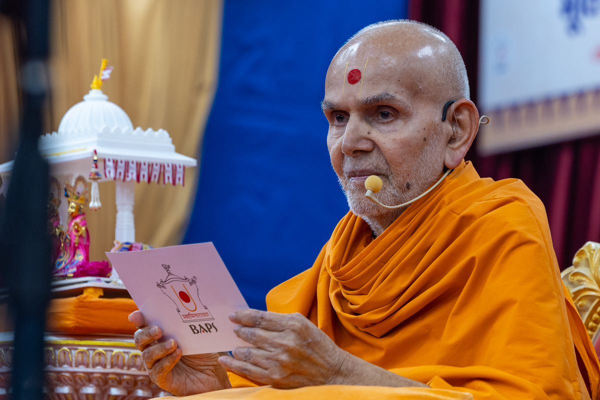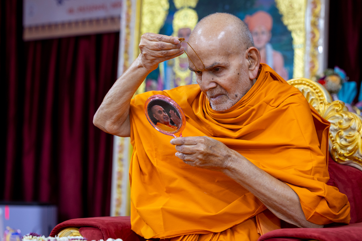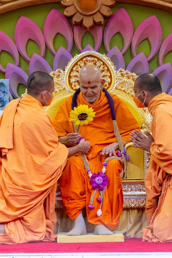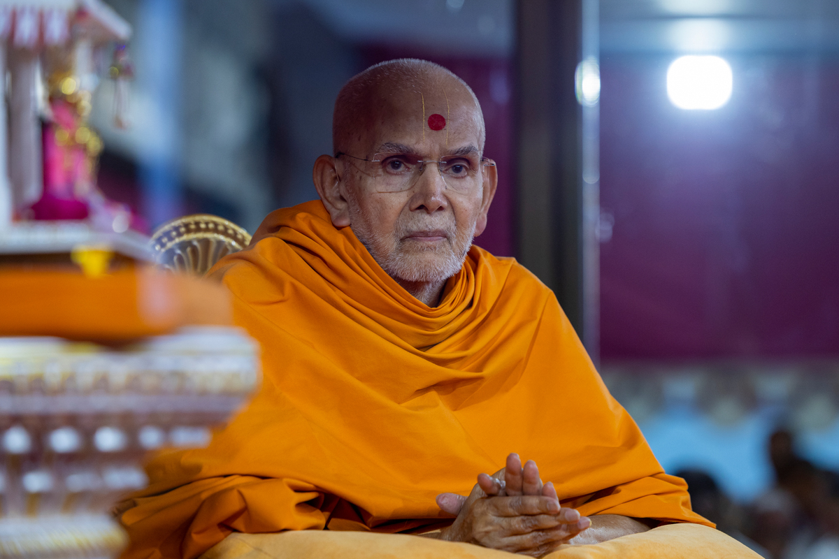 Param Pujya Mahant Swami Maharaj greets all with folded hands