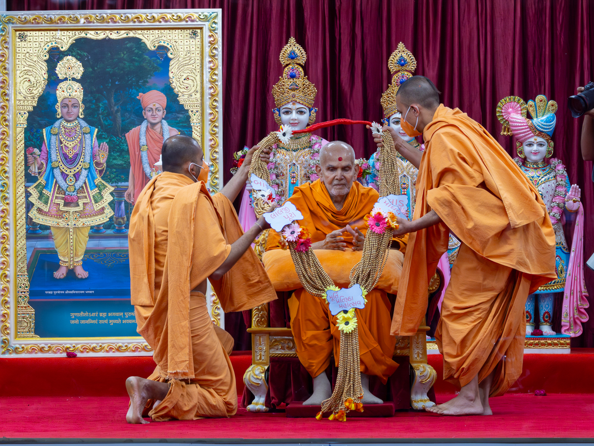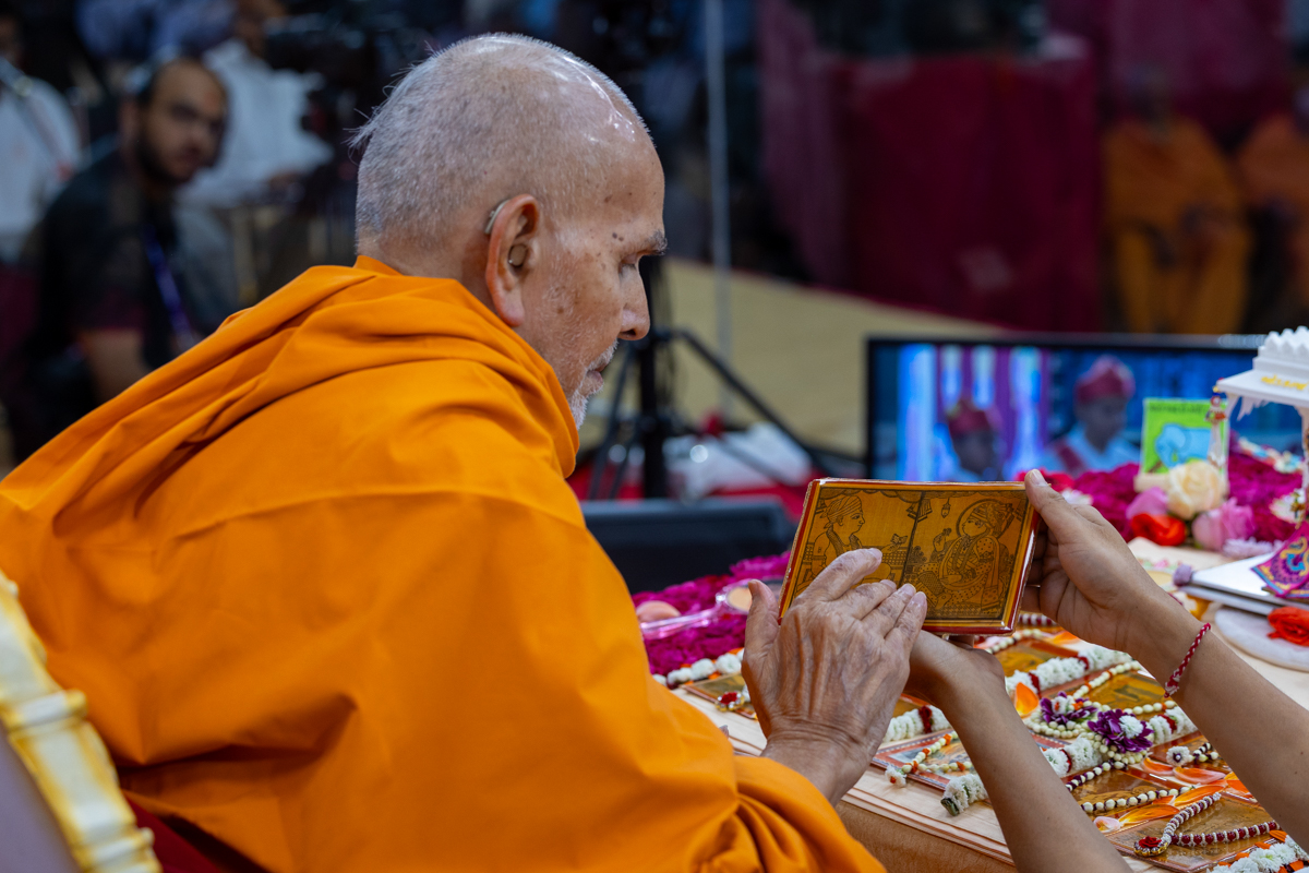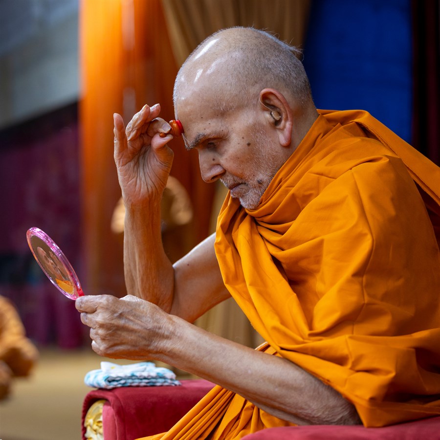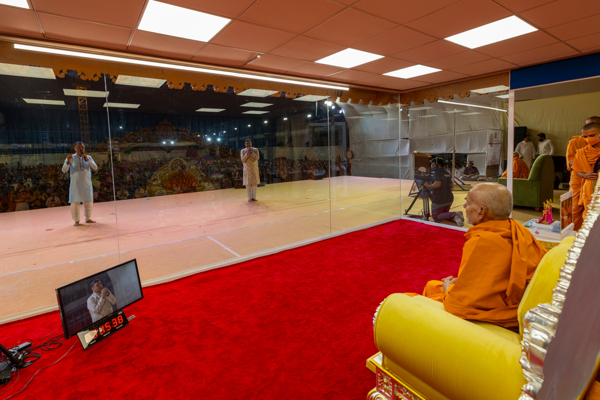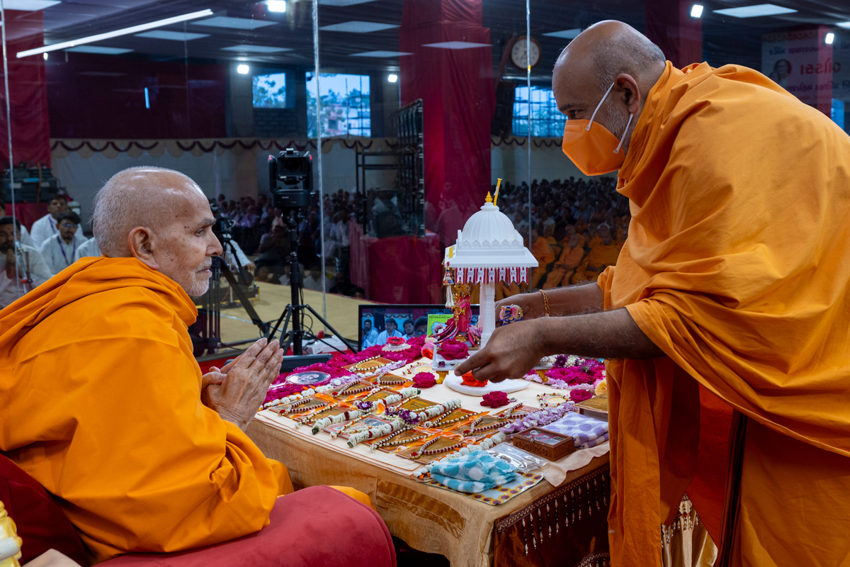 Param Pujya Mahant Swami Maharaj greets all with folded hands