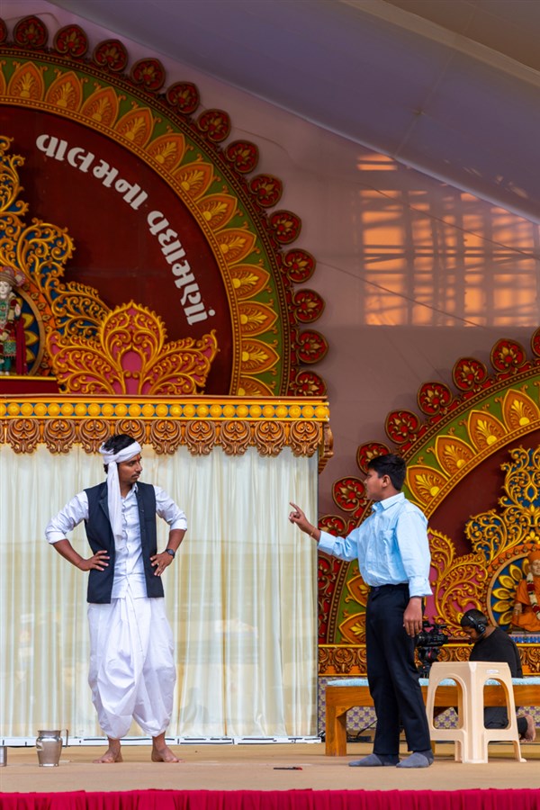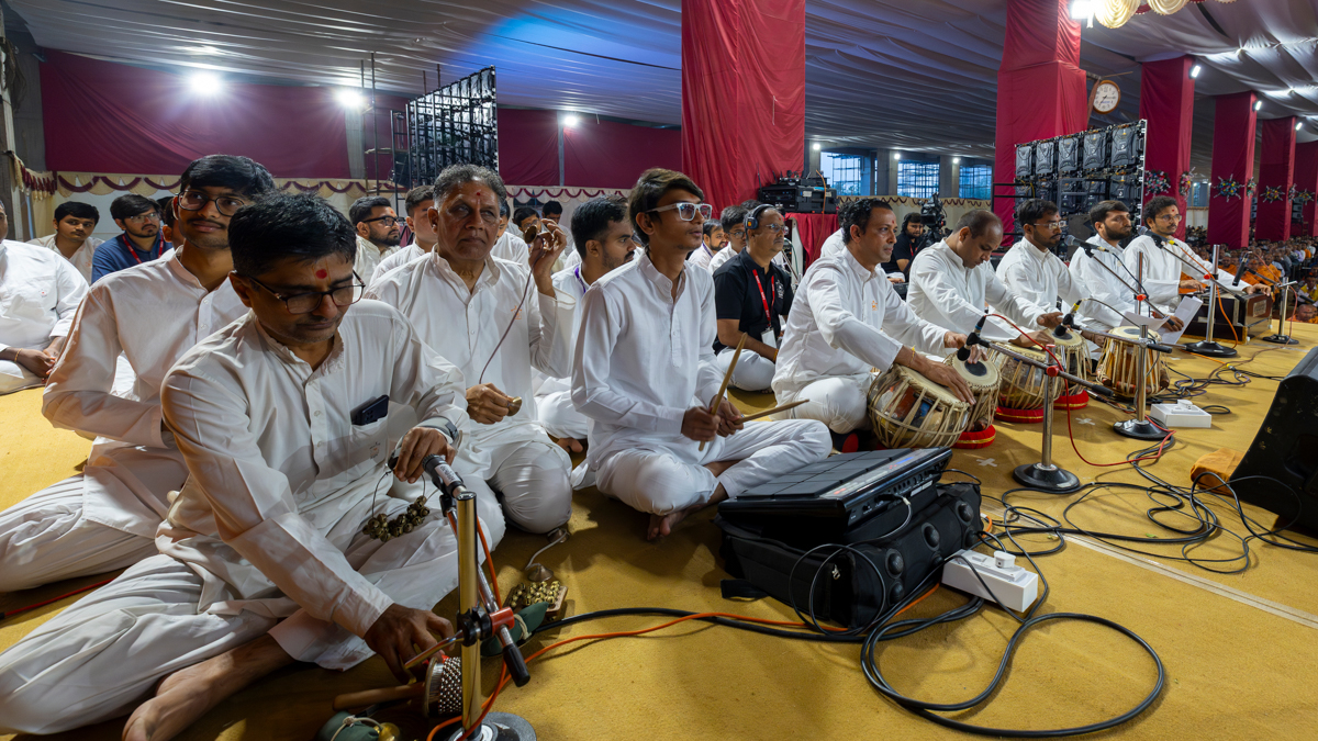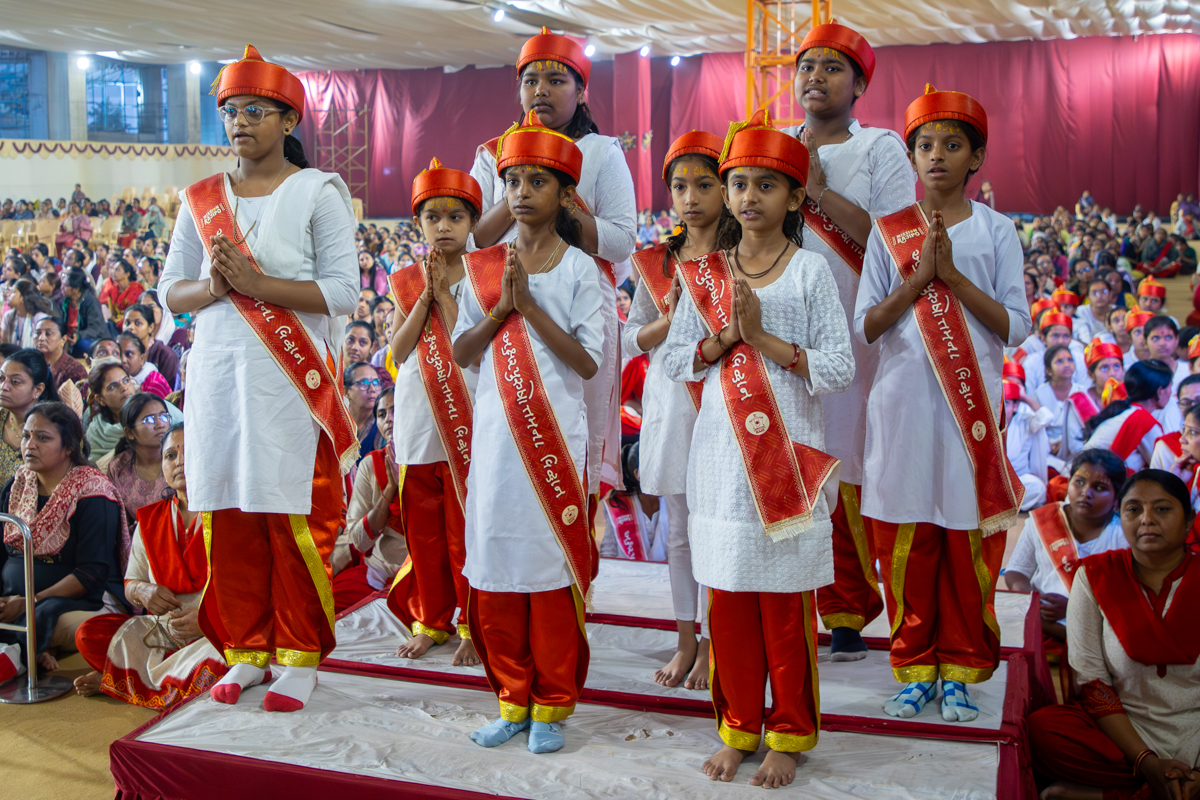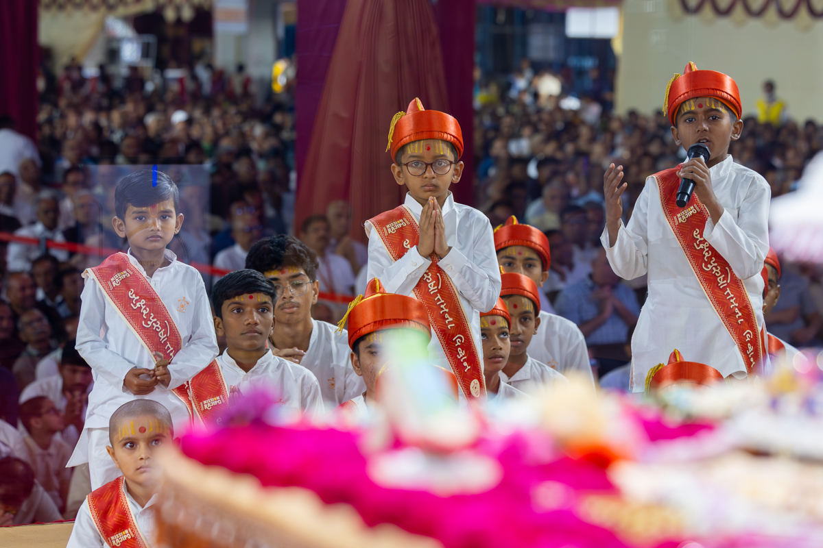 Balaks lead everyone in reciting the sadhana mantra and daily prayer in Swamishri's puja