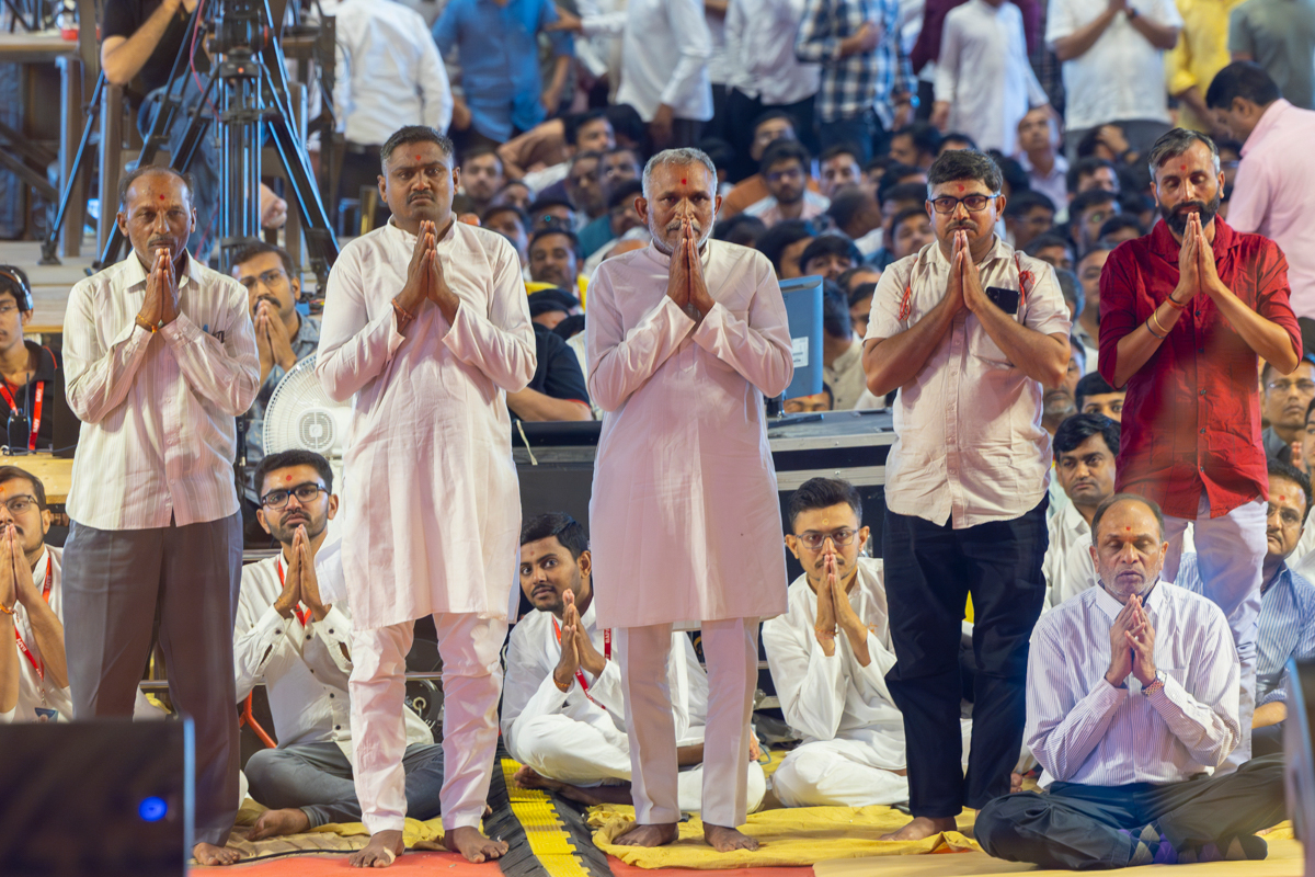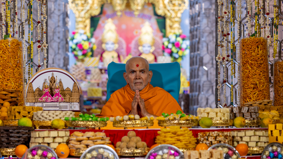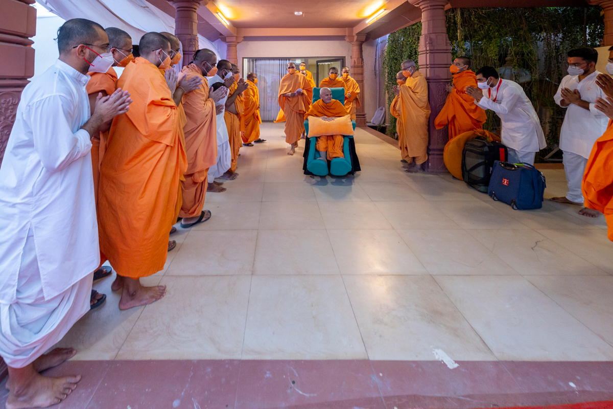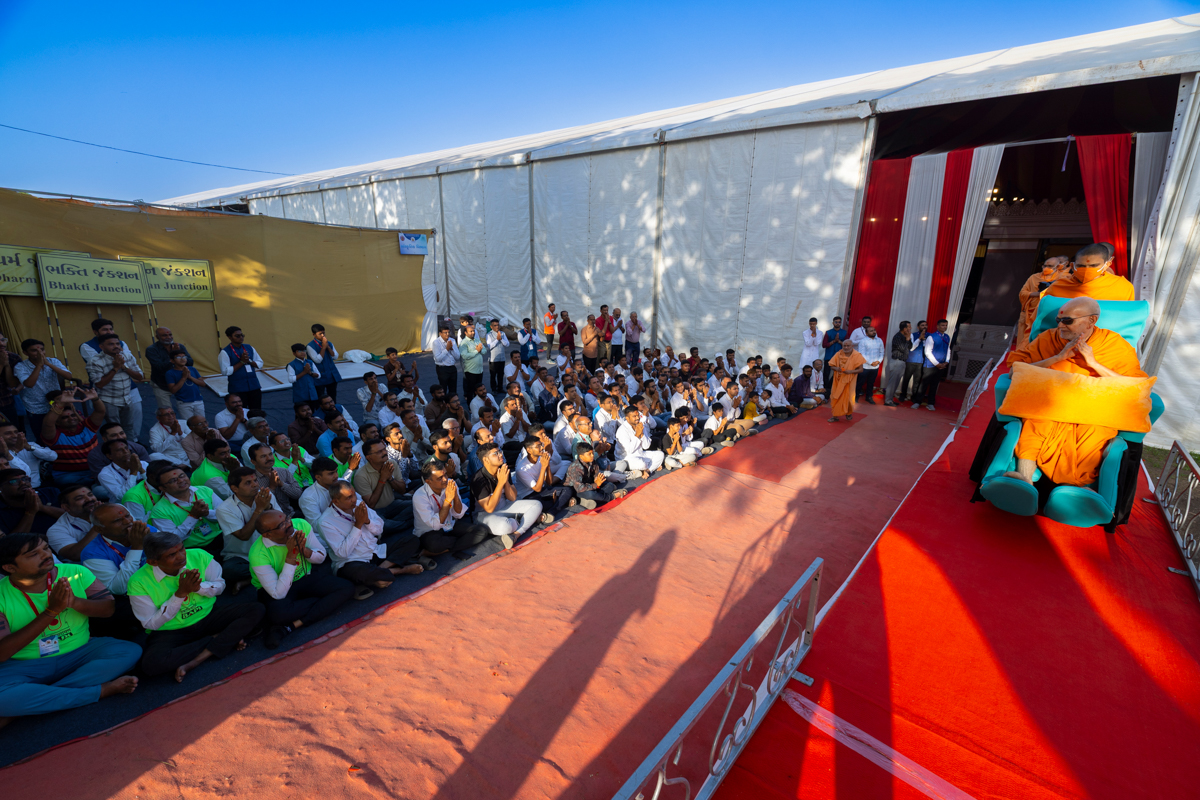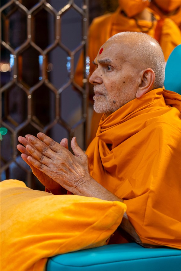 Swamishri greets all with folded hands