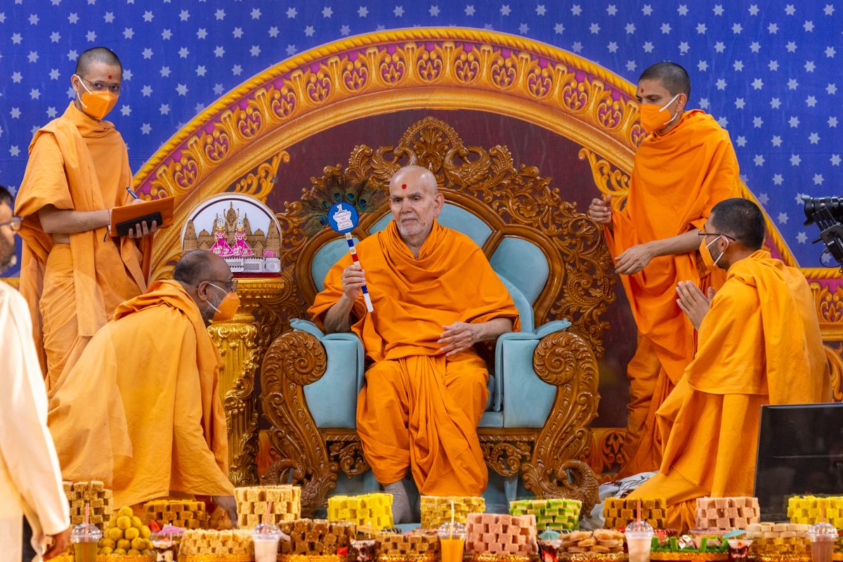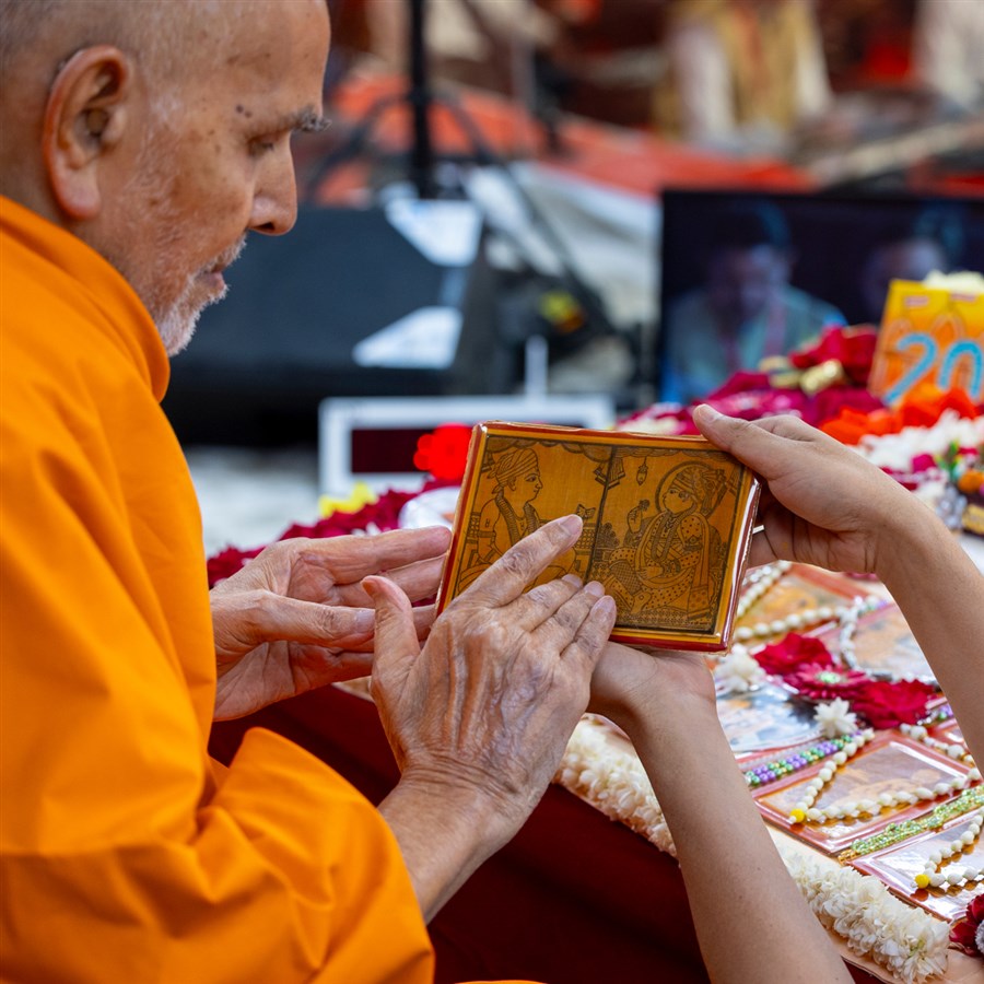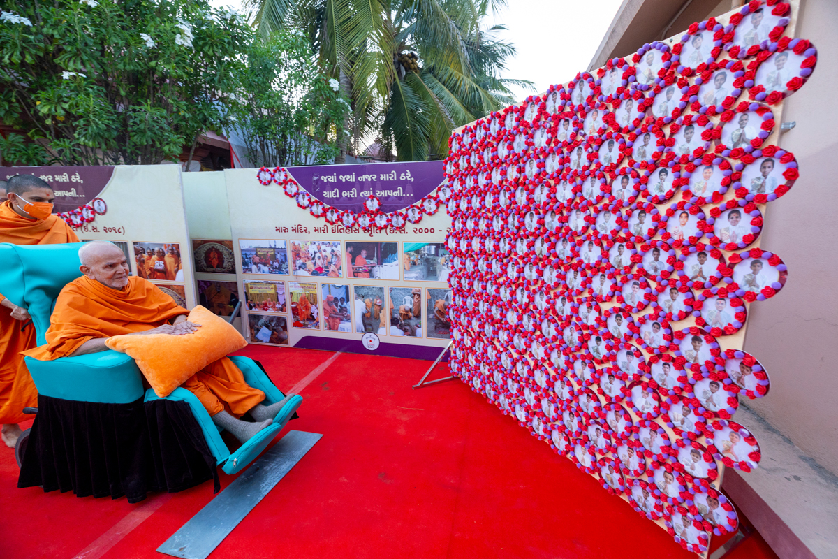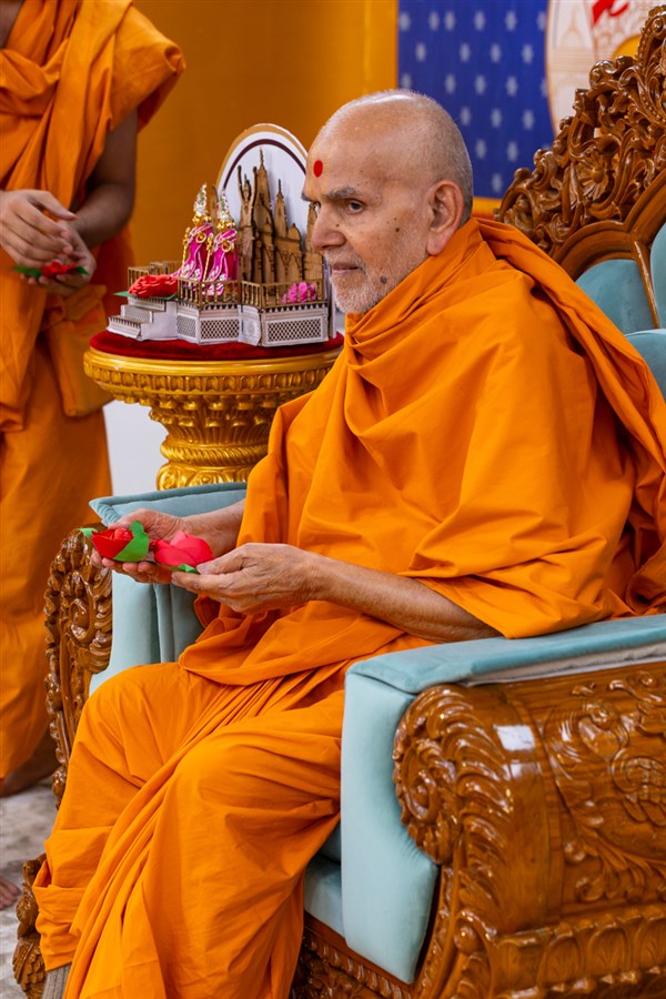 Swamishri observes a decoration