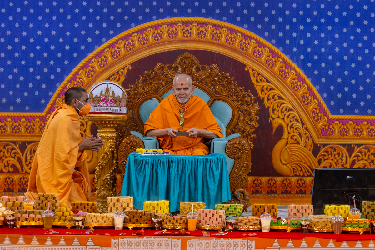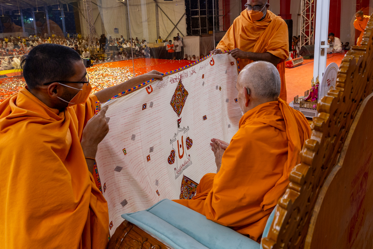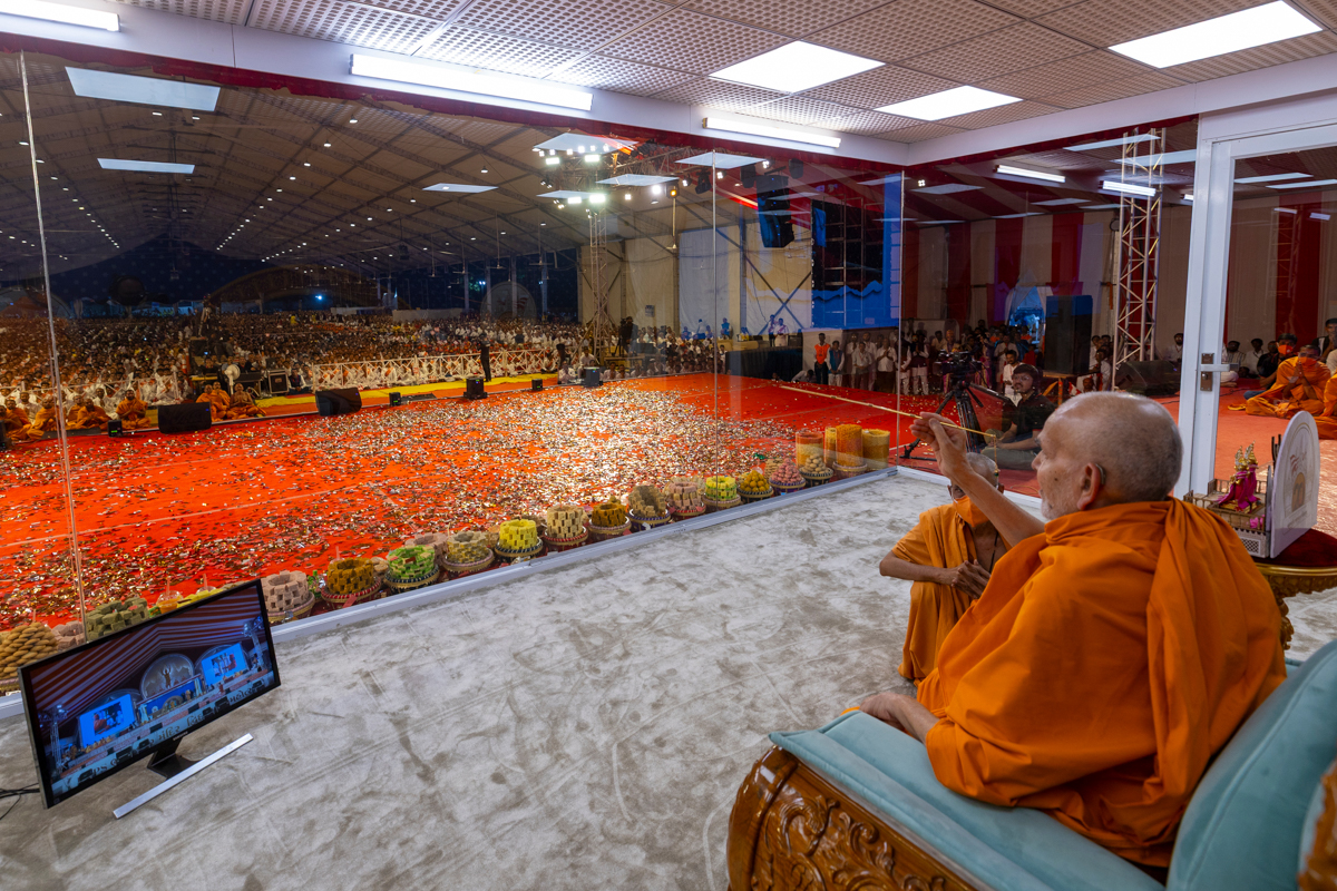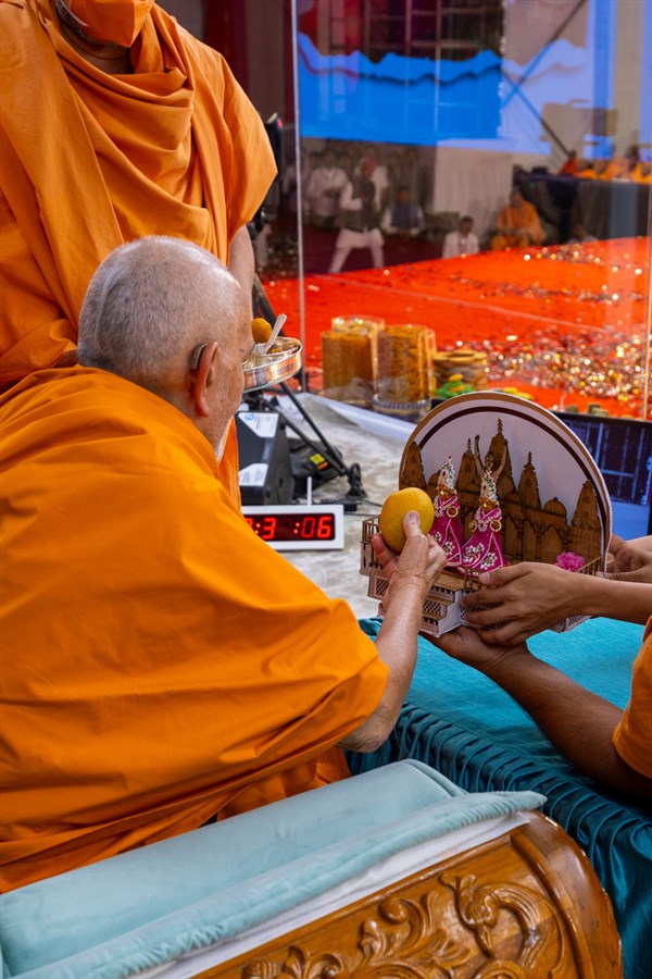 Swamishri observes a decoration
