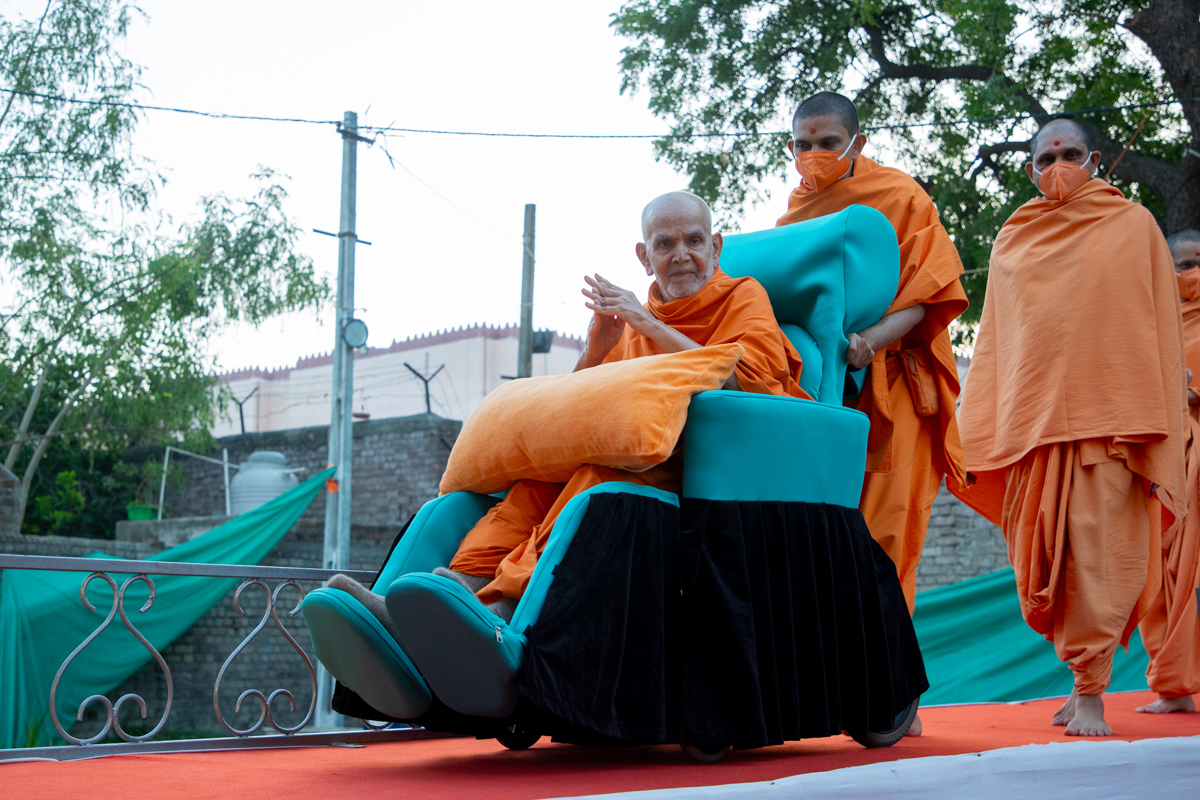 Param Pujya Mahant Swami Maharaj on his way to the assembly hall