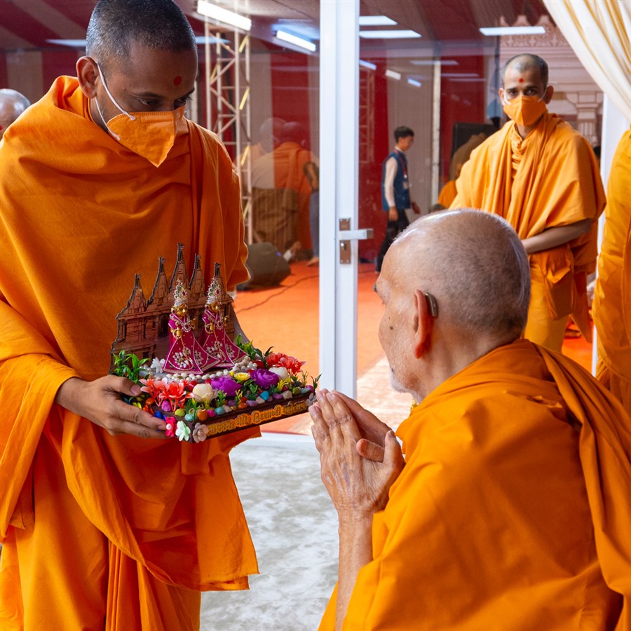 Swamis doing darshan of Swamishri