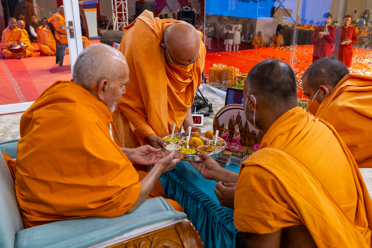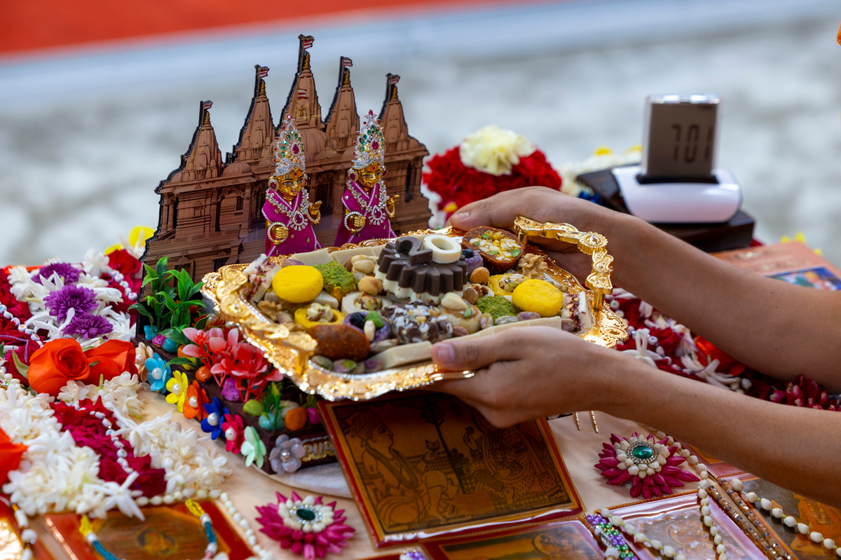 Thal is offered to Shri Harikrishna Maharaj and Shri Gunatitanand Swami Maharaj
