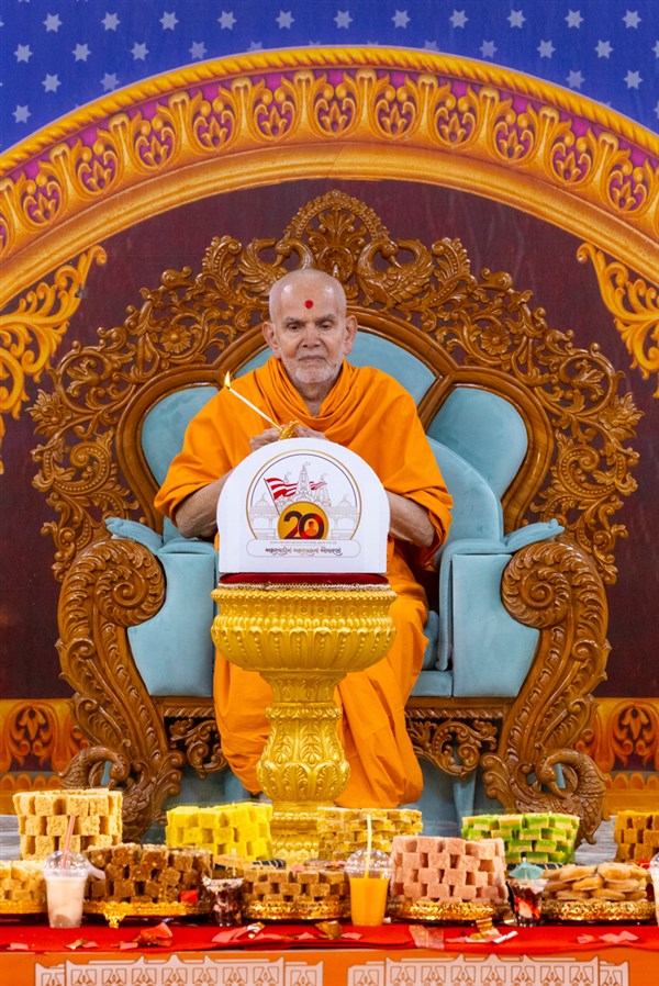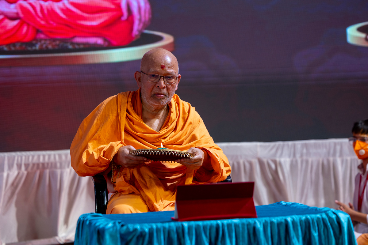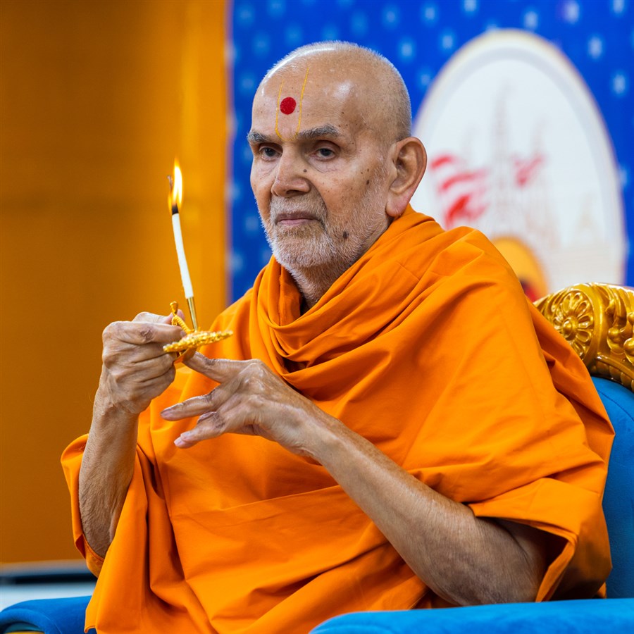 Swamishri performs the morning arti