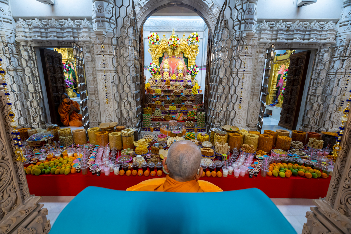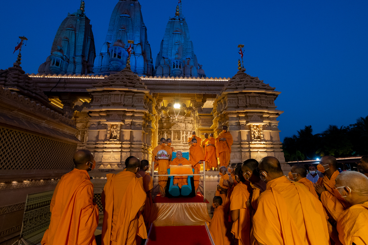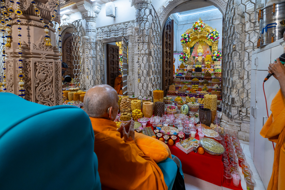 Swamishri arrives for Thakorji's darshan