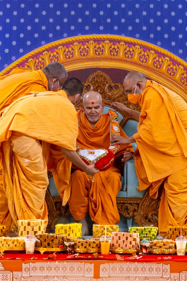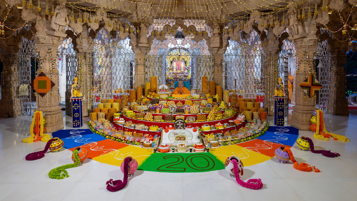 Swamishri seated amid the annakut