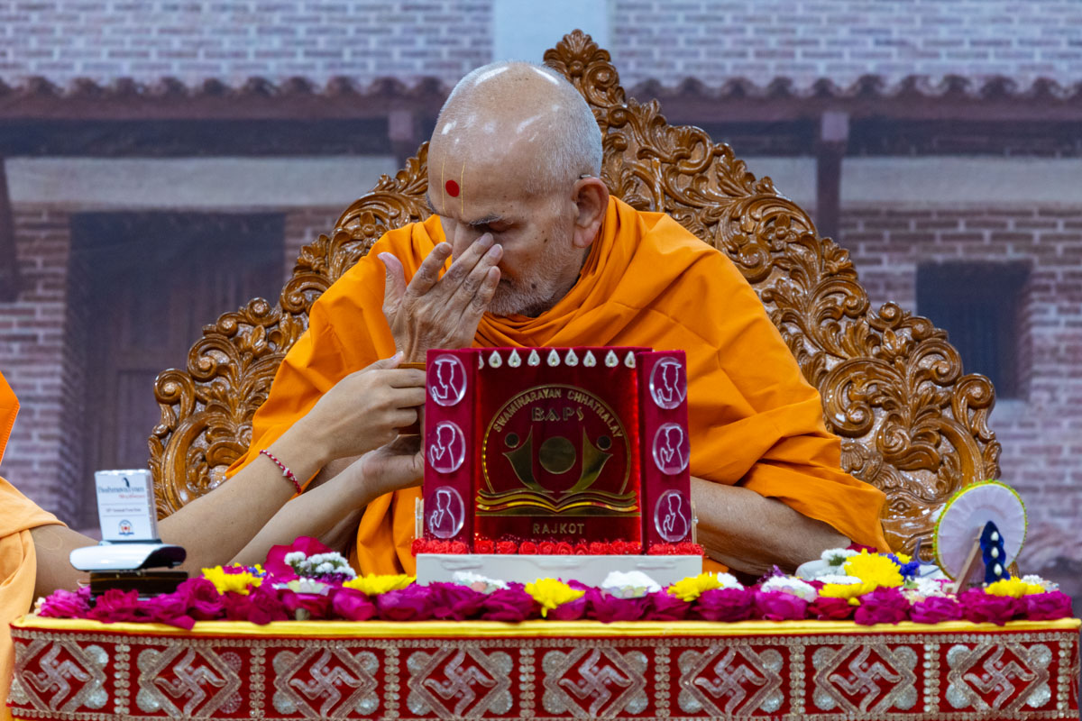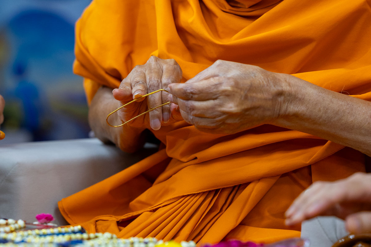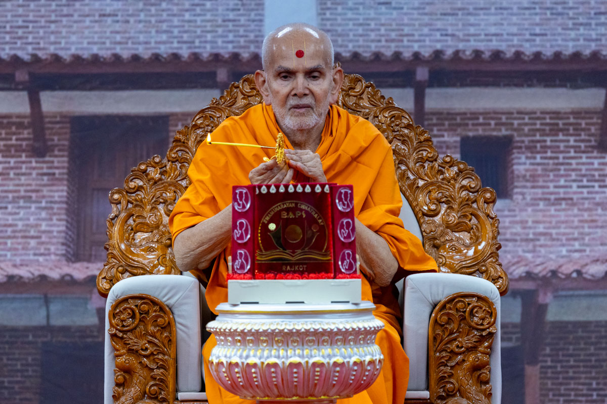 Swamishri sanctifies kanthis for the vartman ceremony