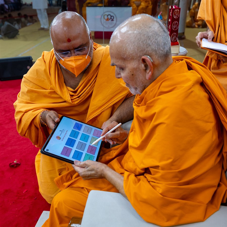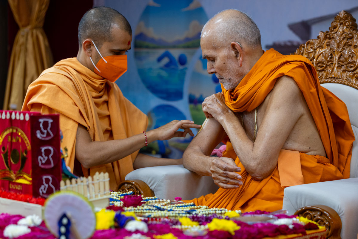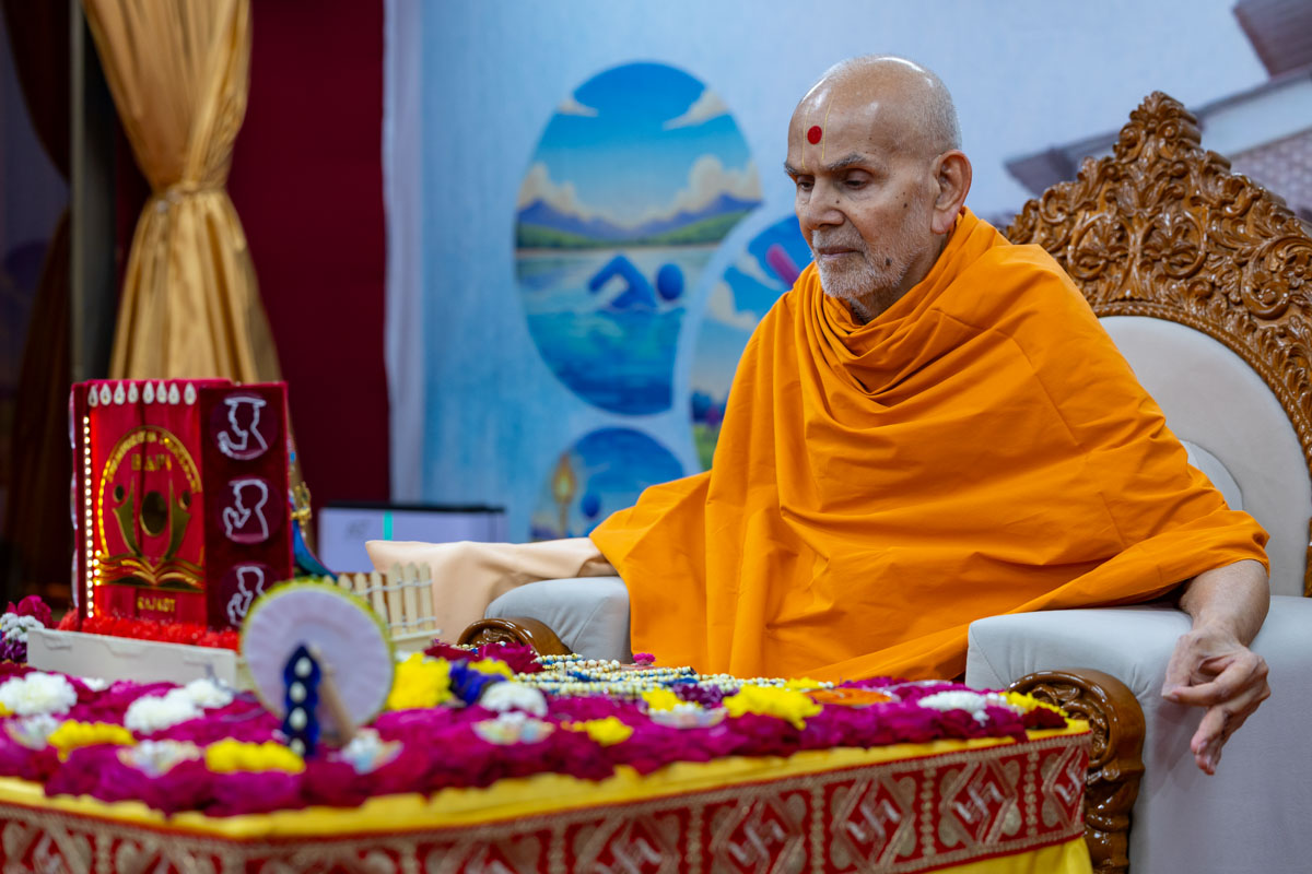 Swamishri participates in an activity