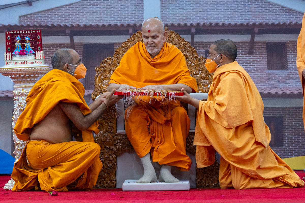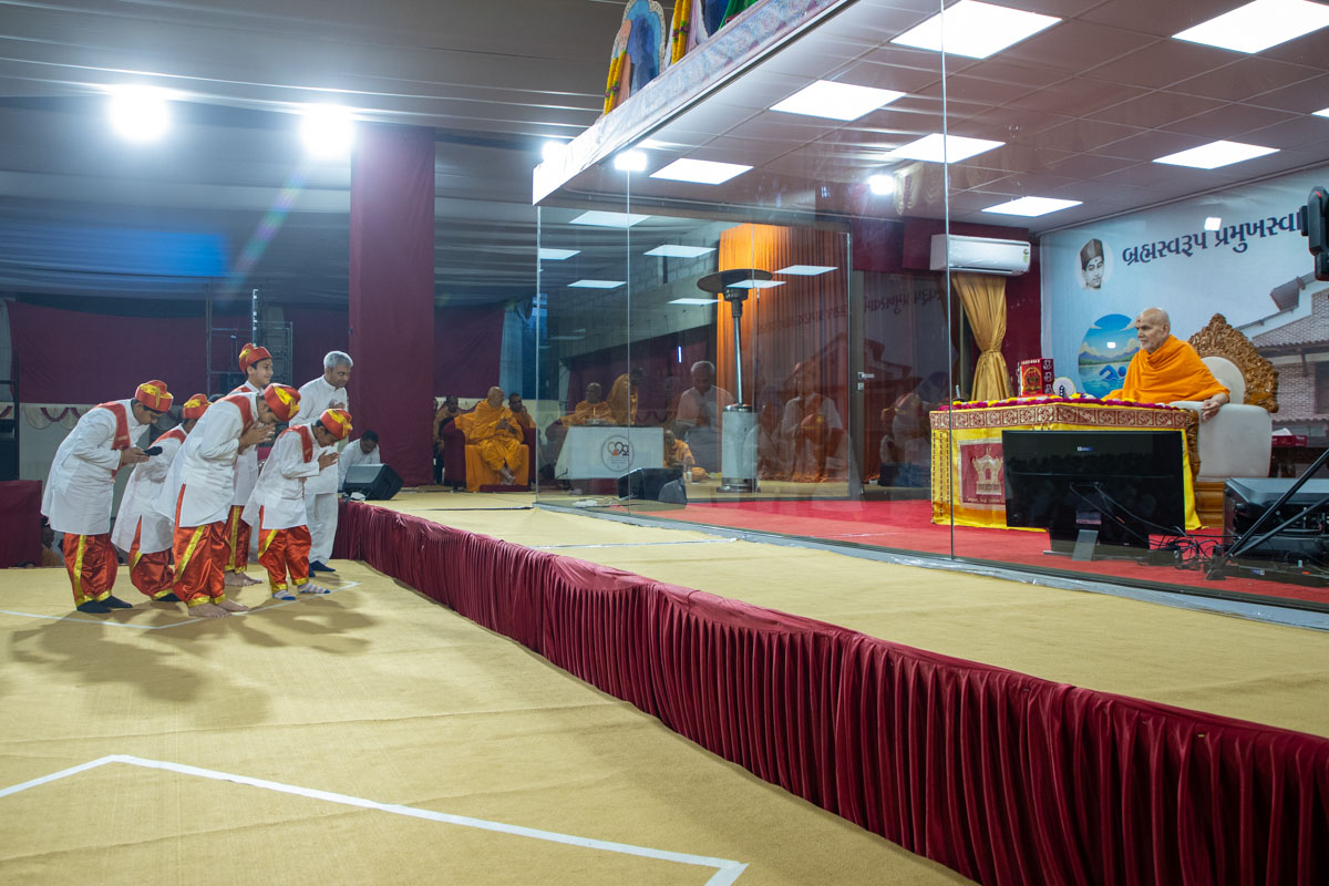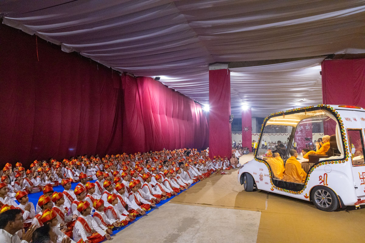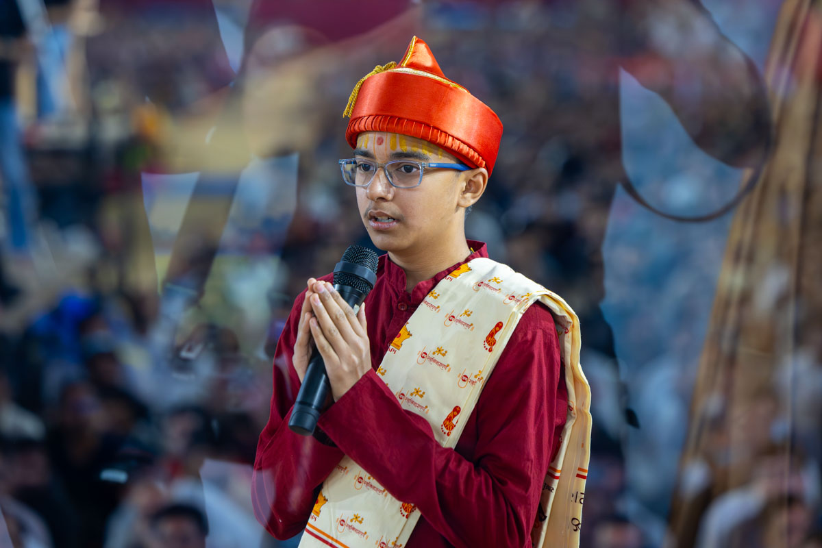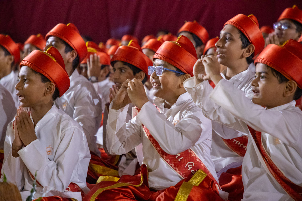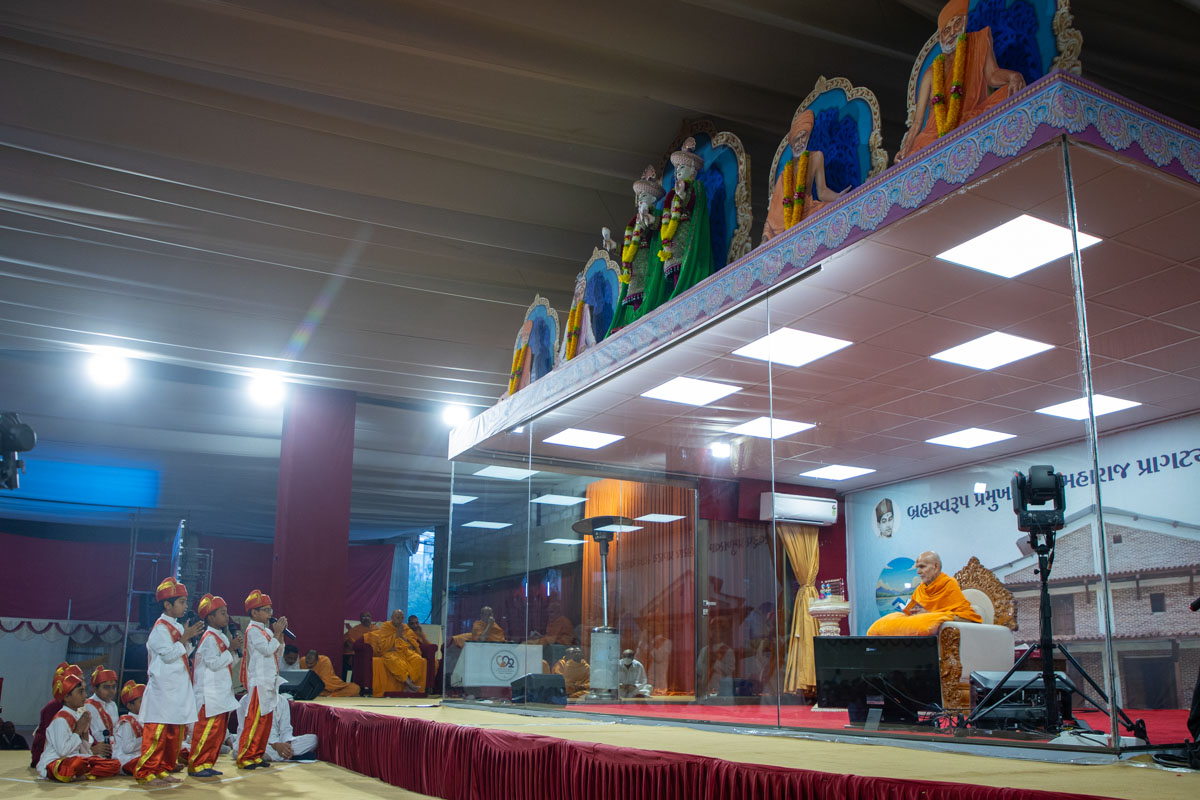 Swamishri listens to recitations by a balak