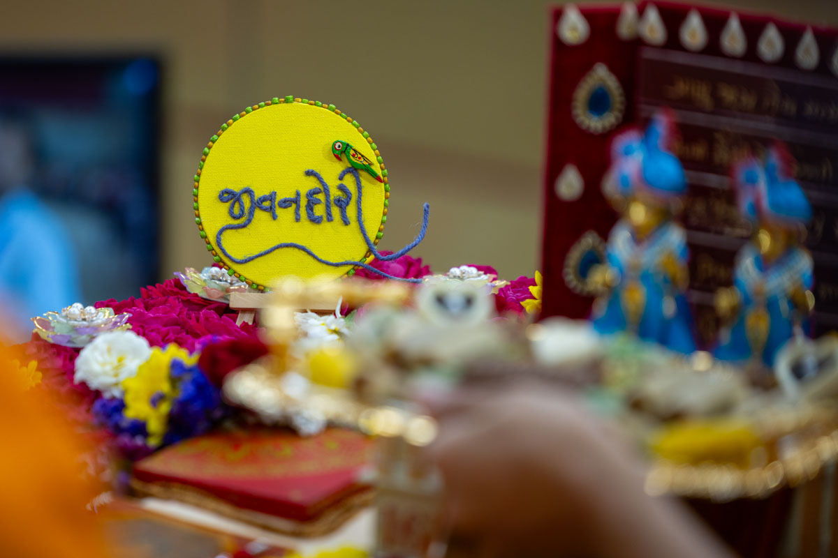 Decorations in Swamishri's daily puja