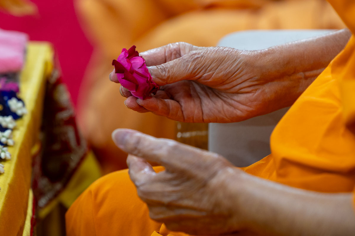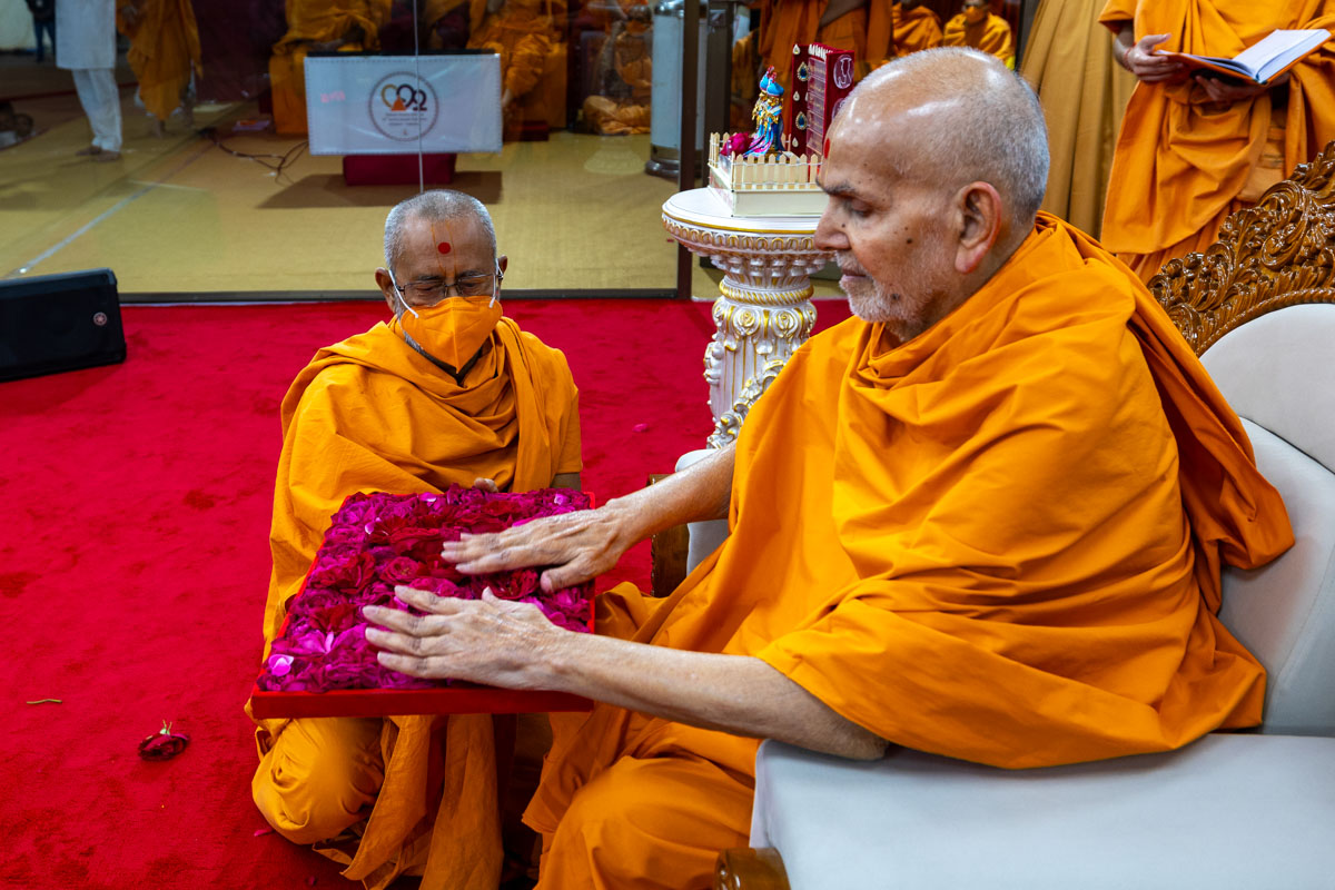 Swamishri sanctifies flowers