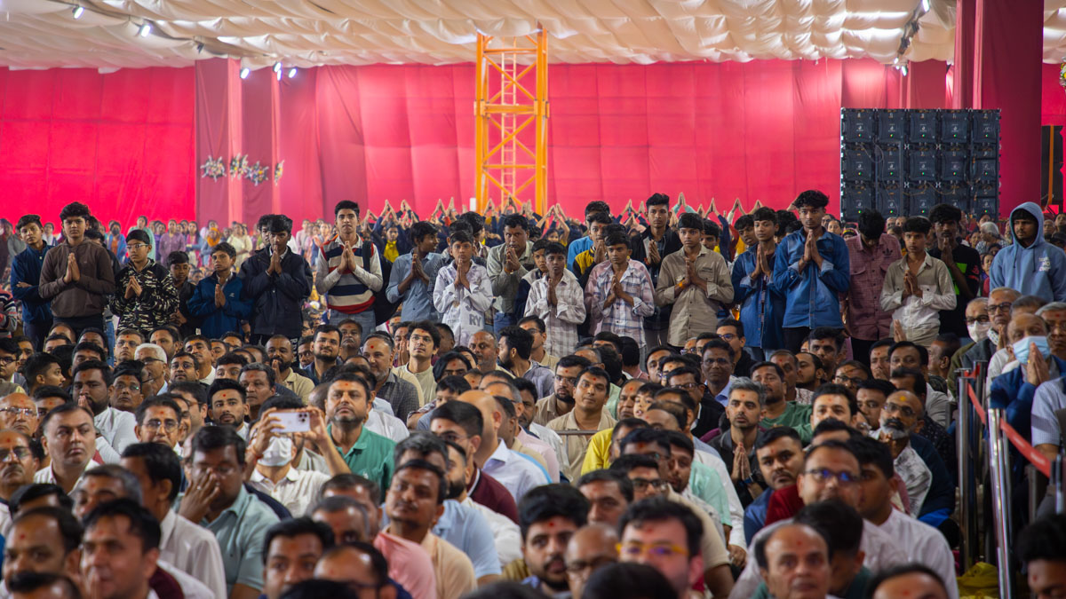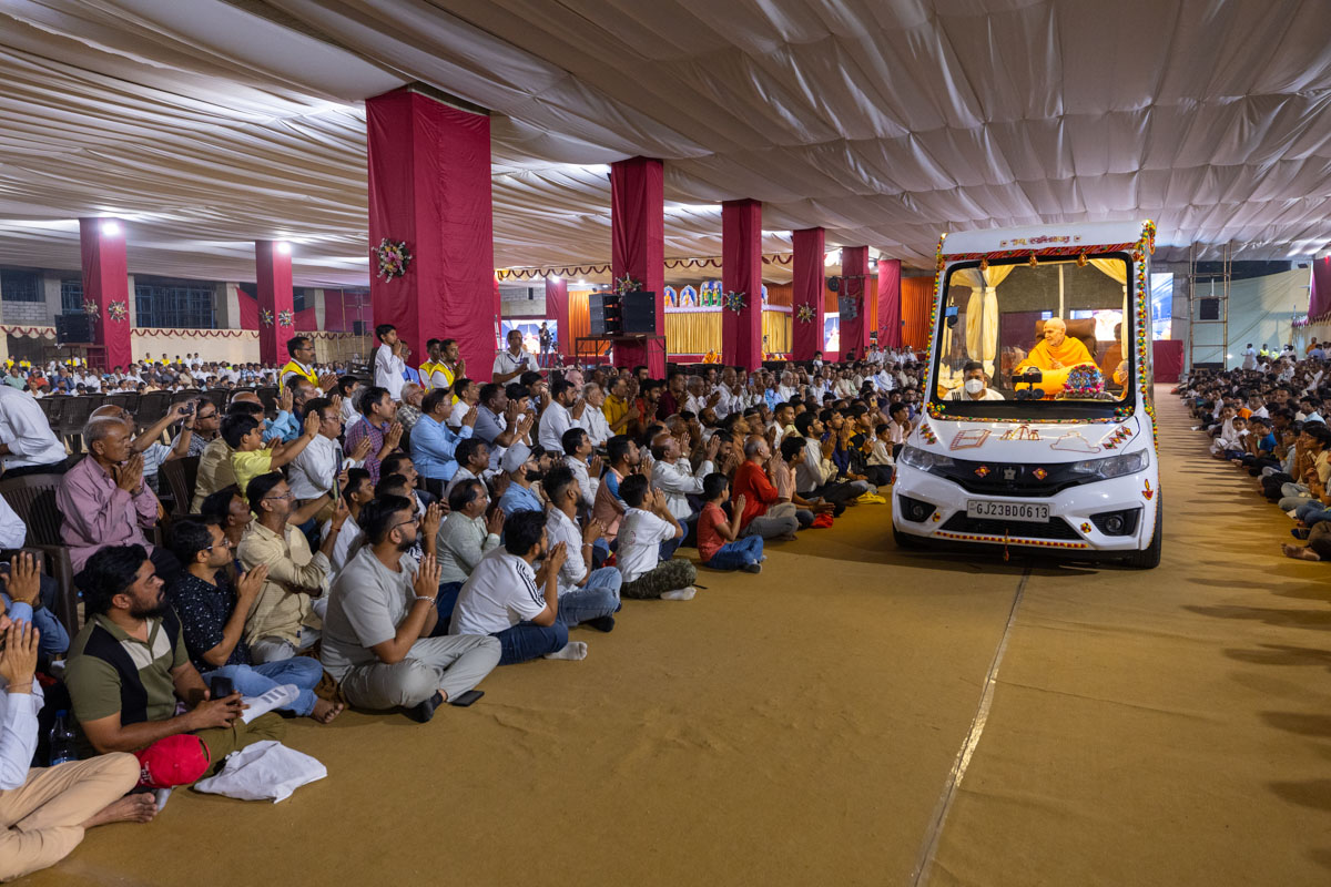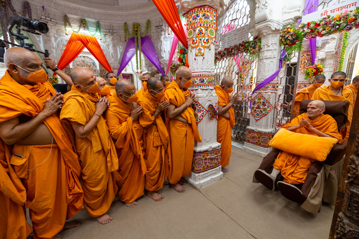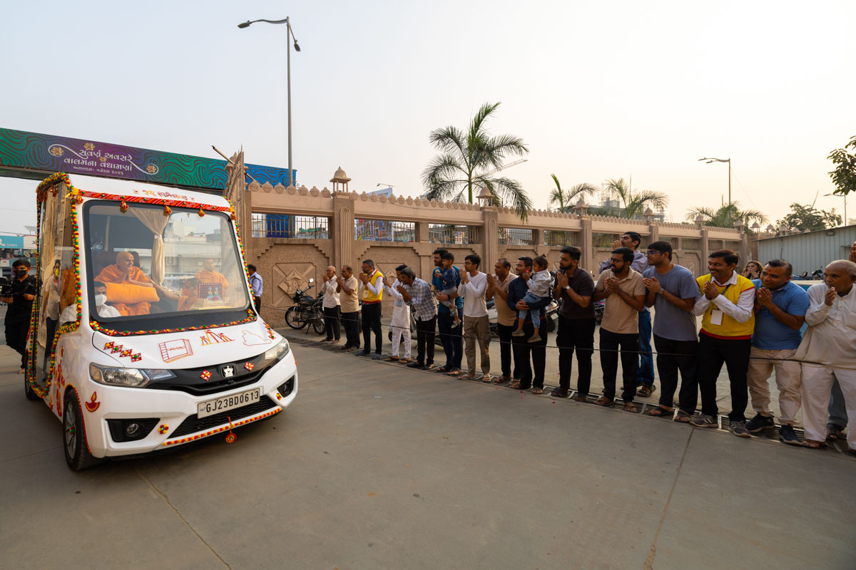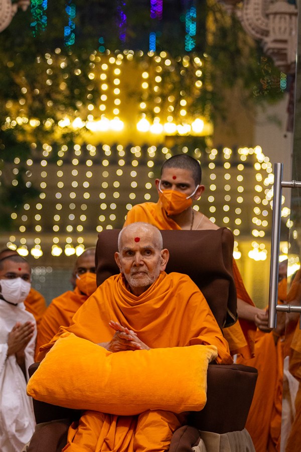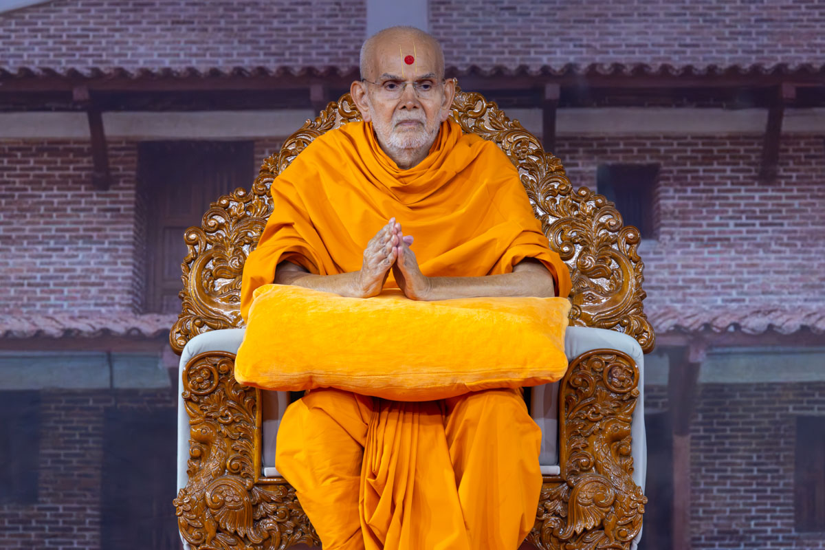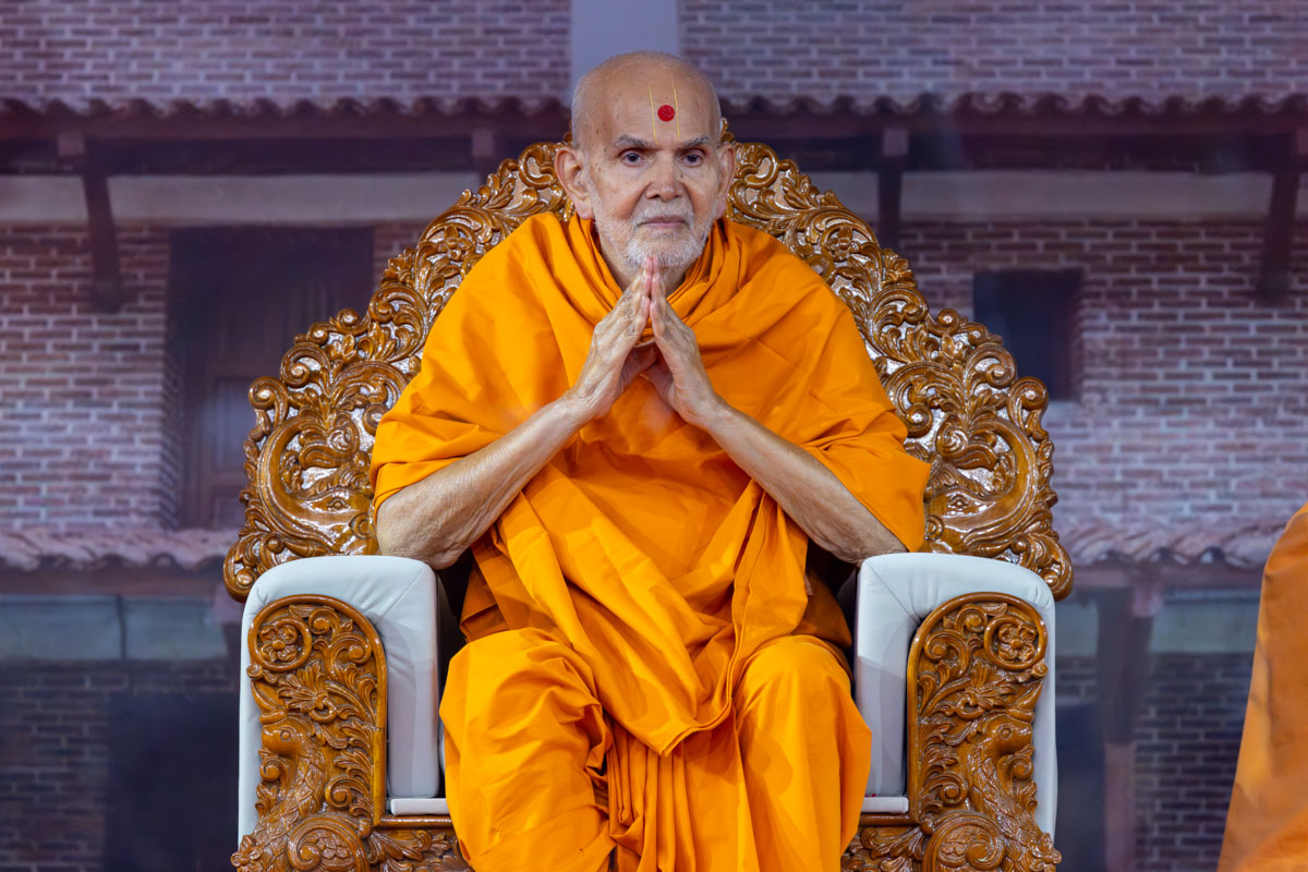 Swamishri greets all with folded hands