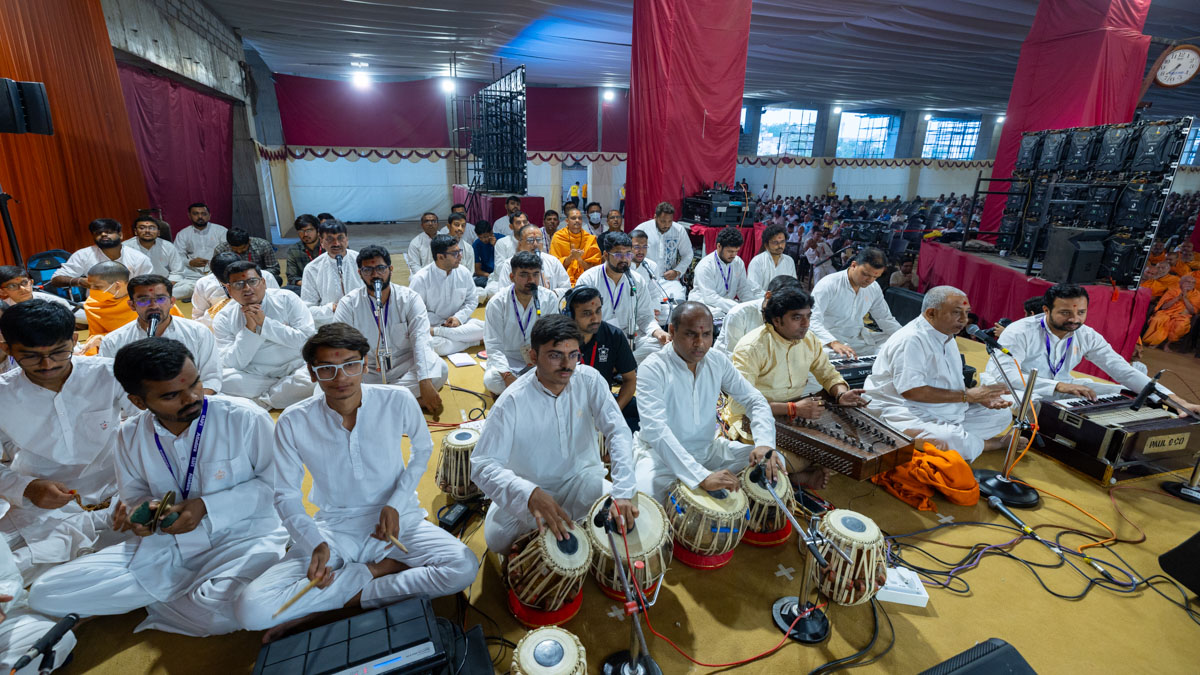 Yuvaks sing kirtans in Swamishri's daily puja