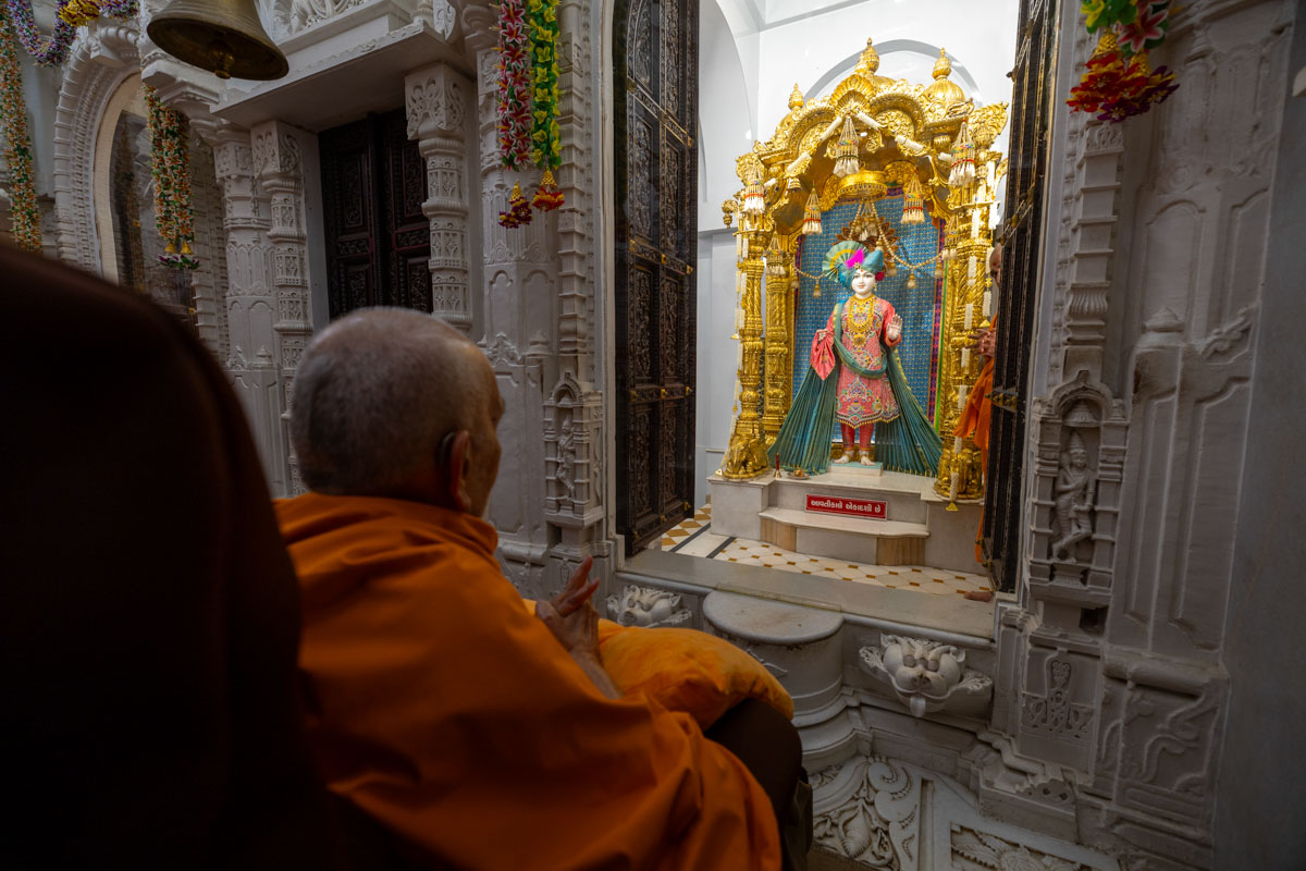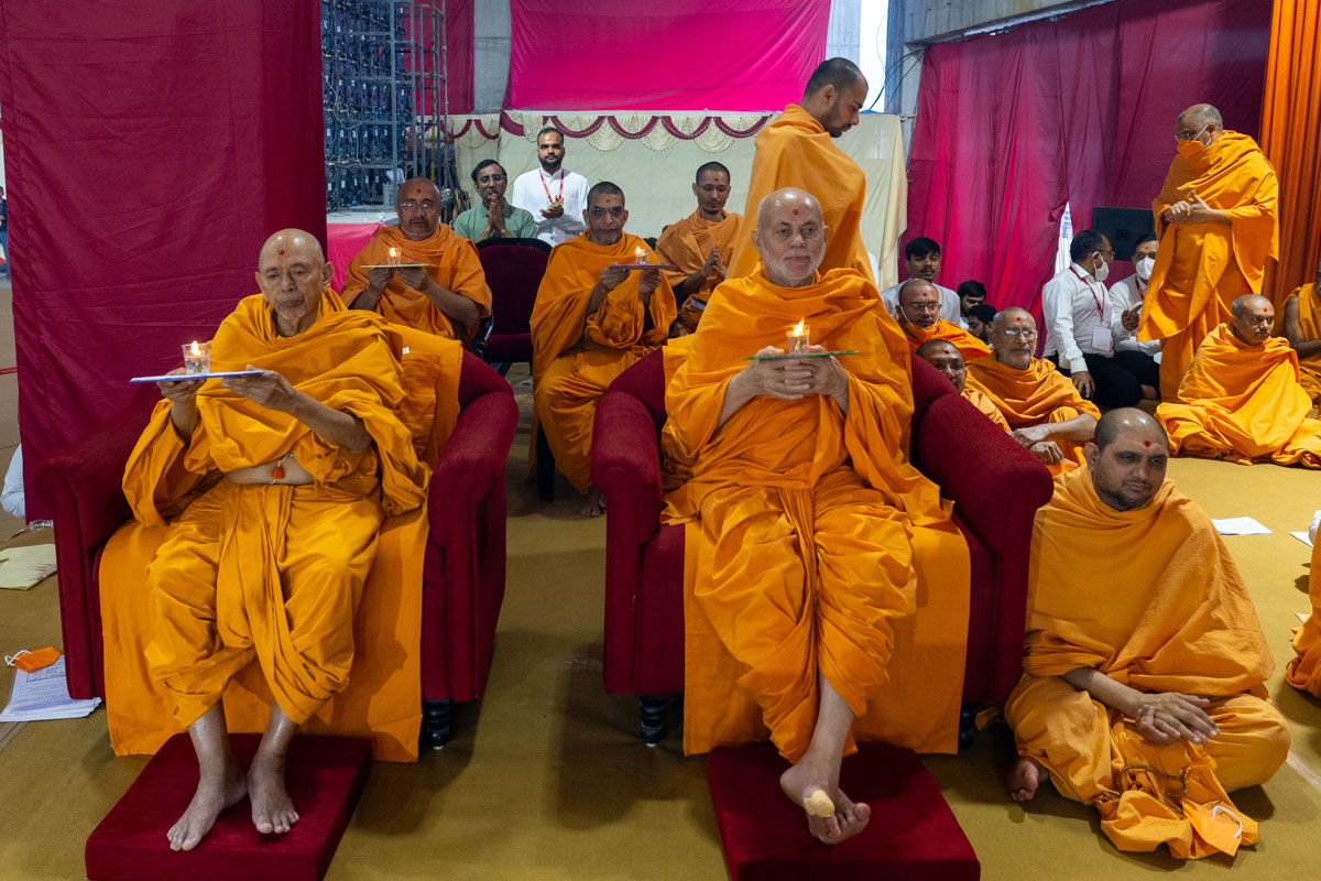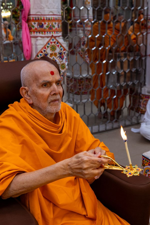 Swamishri performs the morning arti