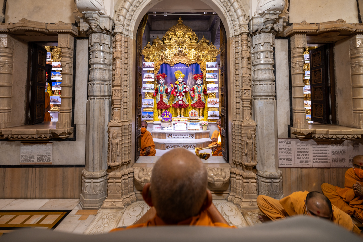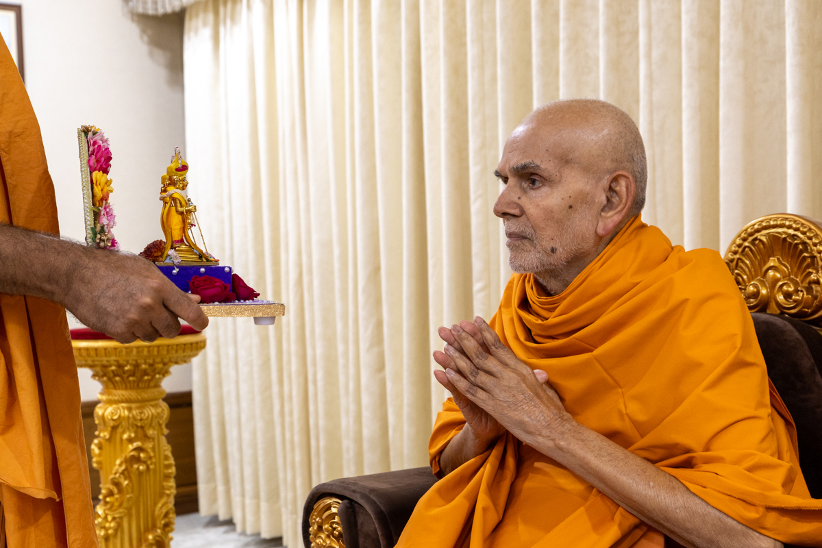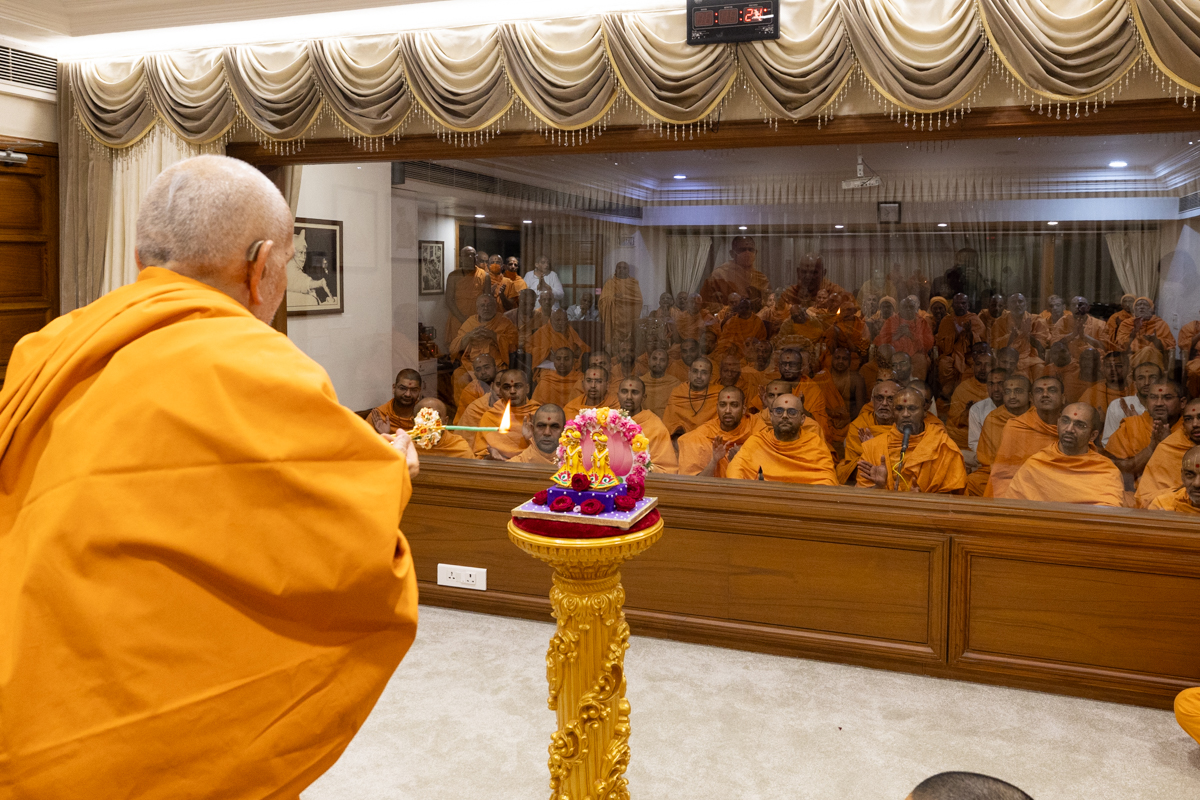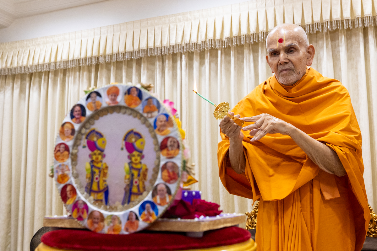 Swamishri performs the morning arti