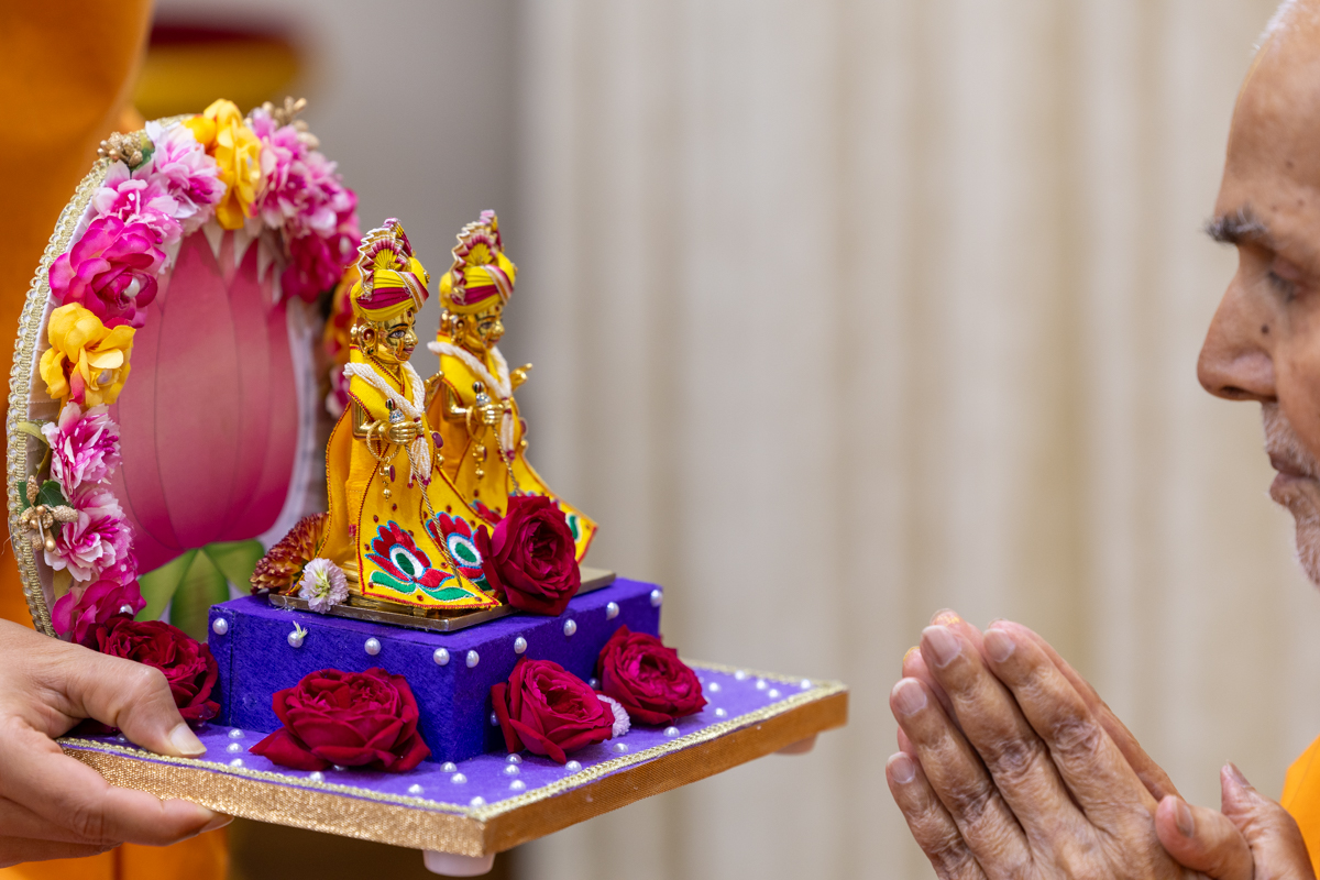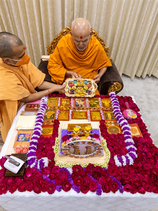 Swamishri offers thal to Thakorji