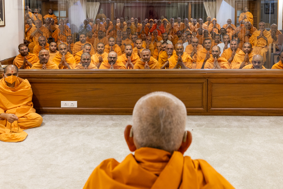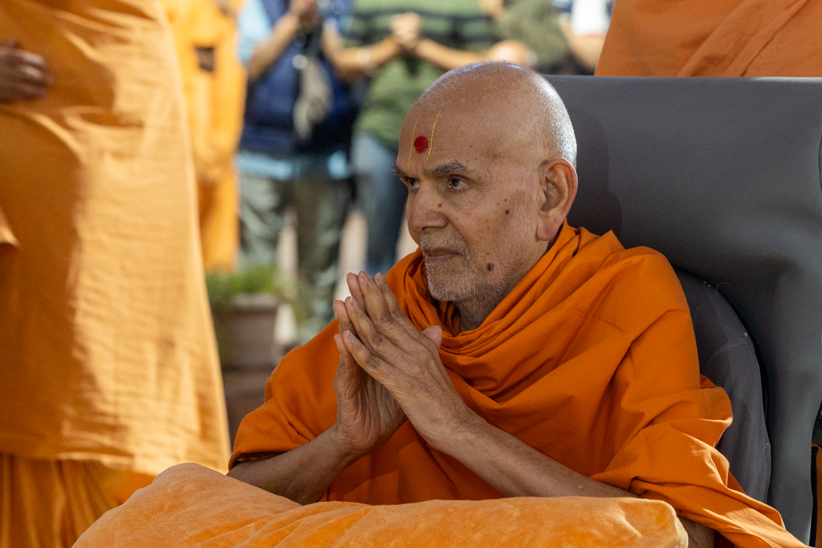 Swamishri greets all with folded hands