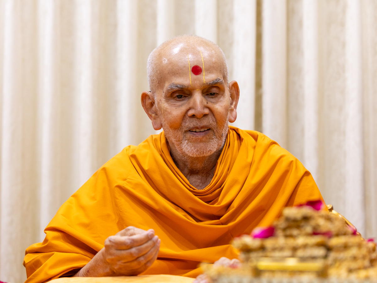 Swamishri observes prasad