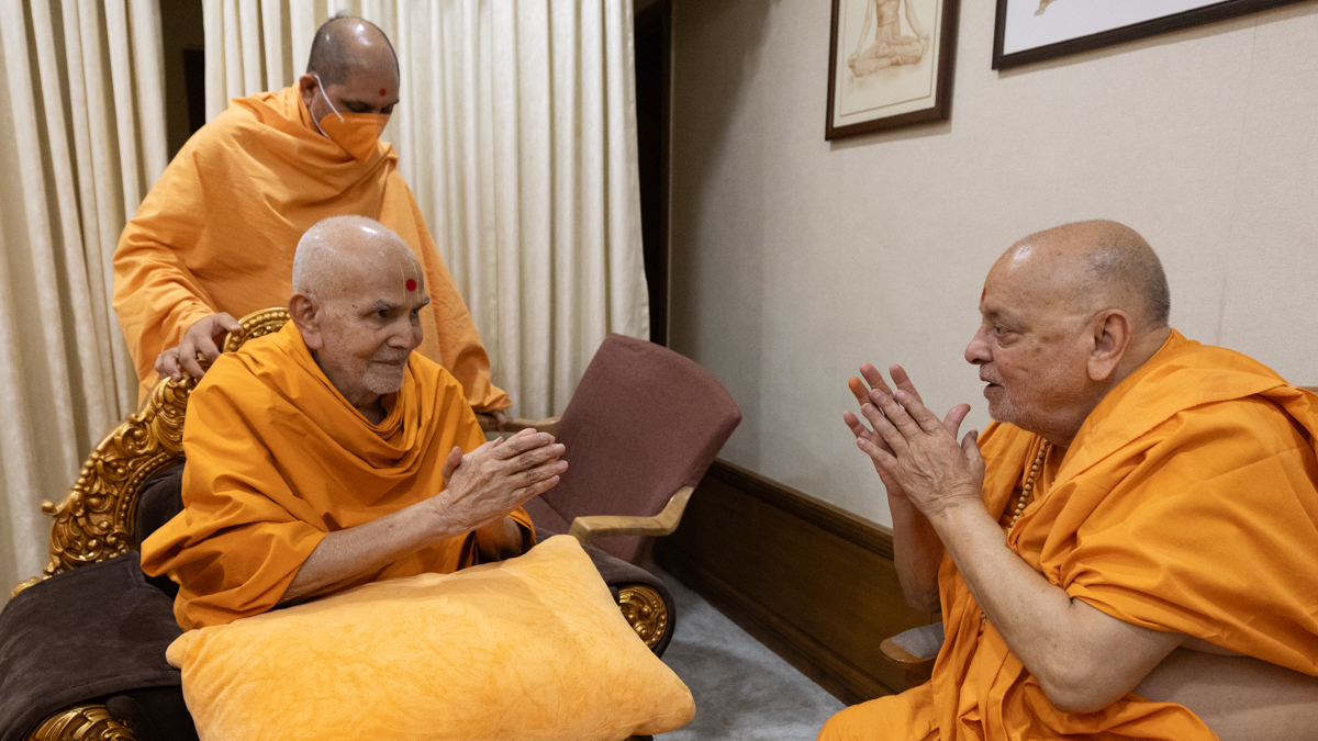 Swamis doing darshan of Swamishri