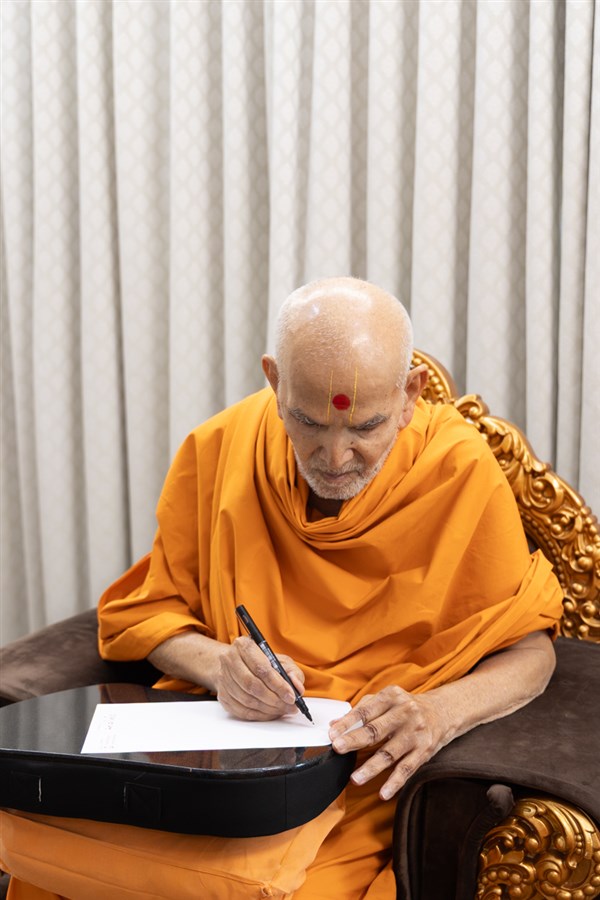 Swamishri writes a message for Dhanurmas