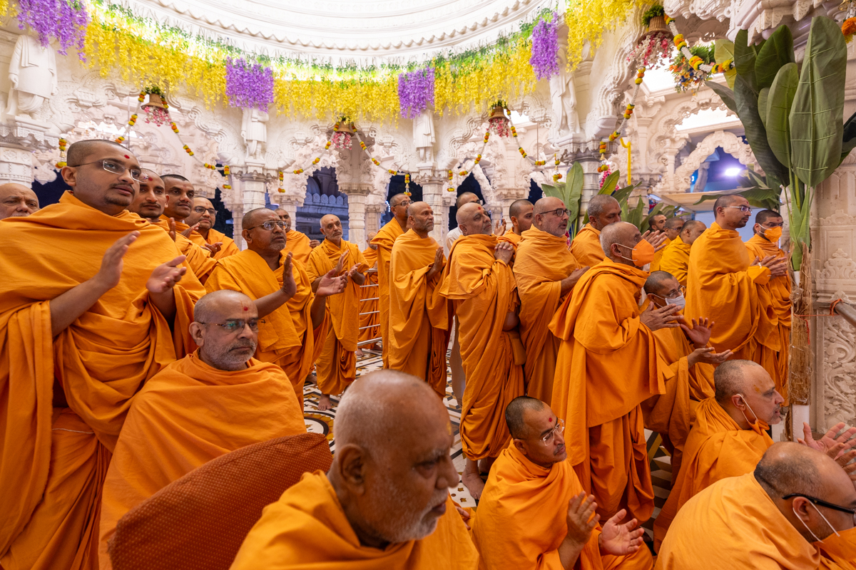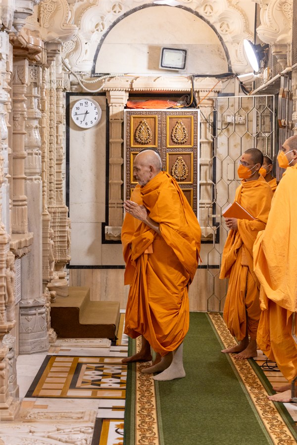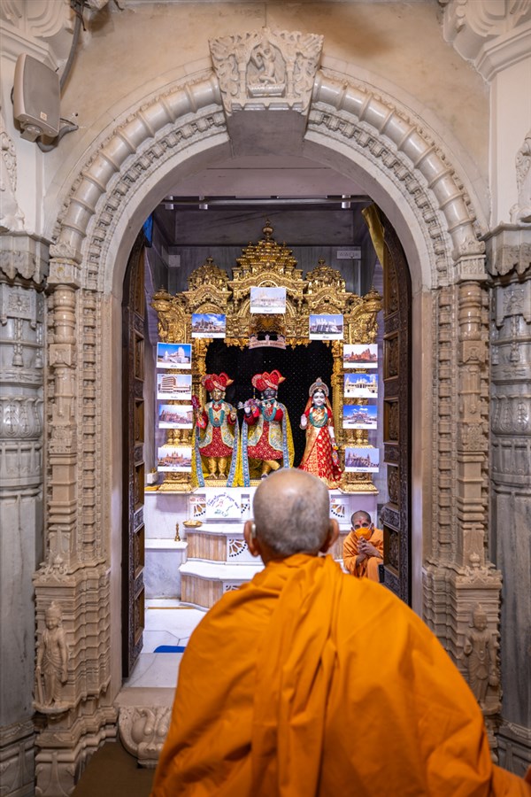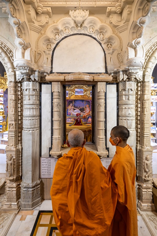 Swamis doing Swamishri's puja darshan