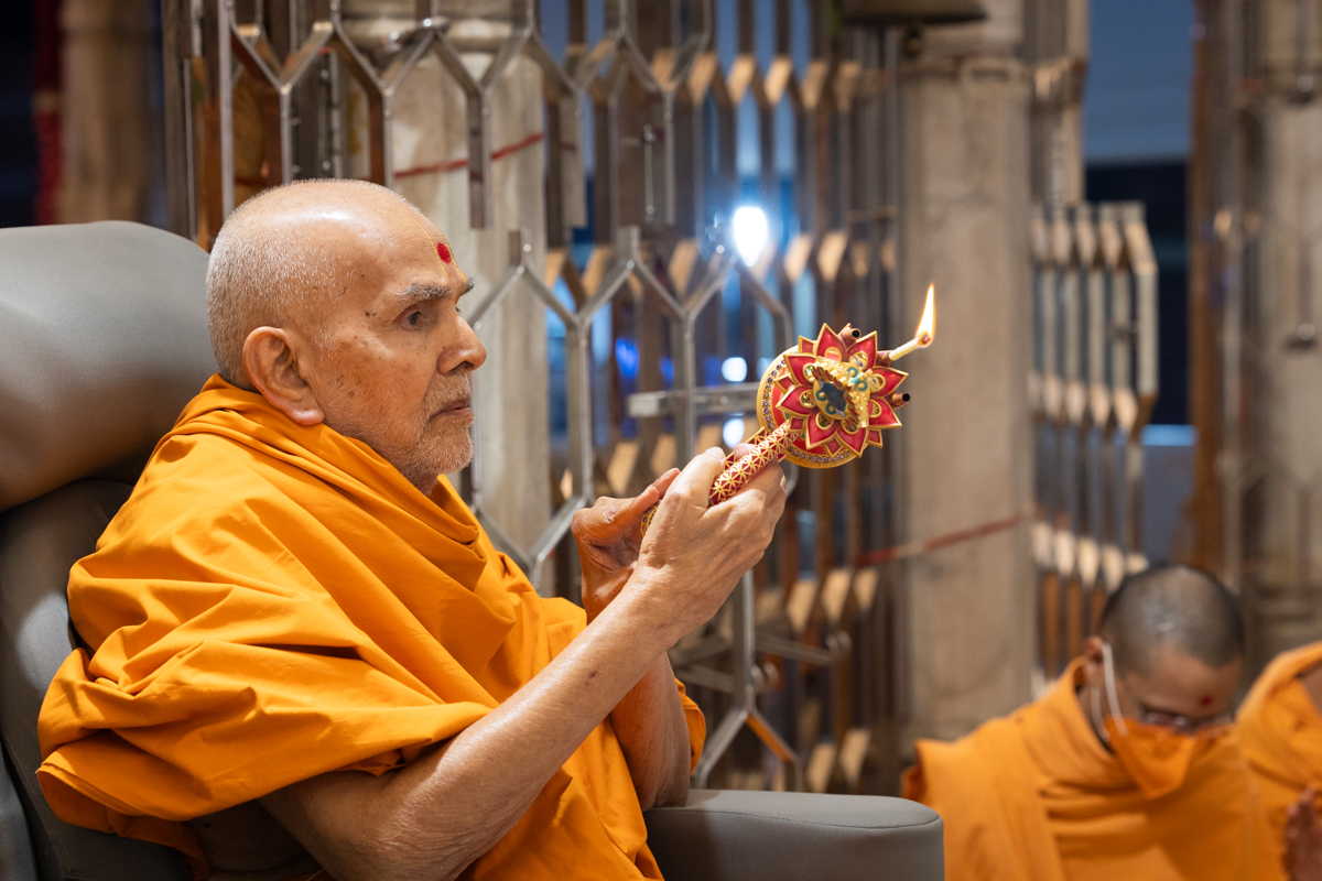 Swamishri performs the evening arti