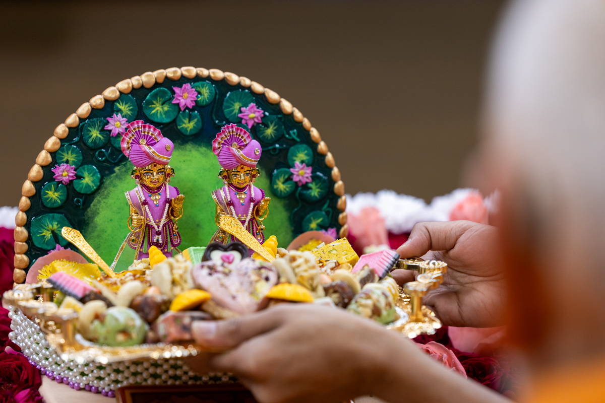 Thal (breakfast) is offered to Shri Harikrishna Maharaj and Shri Gunatitanand Swami Maharaj in the morning