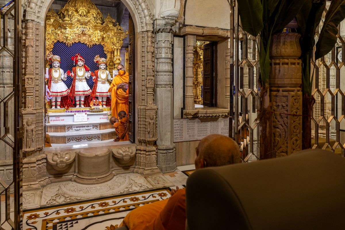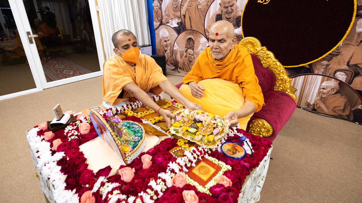Swamishri offers thal to Thakorji