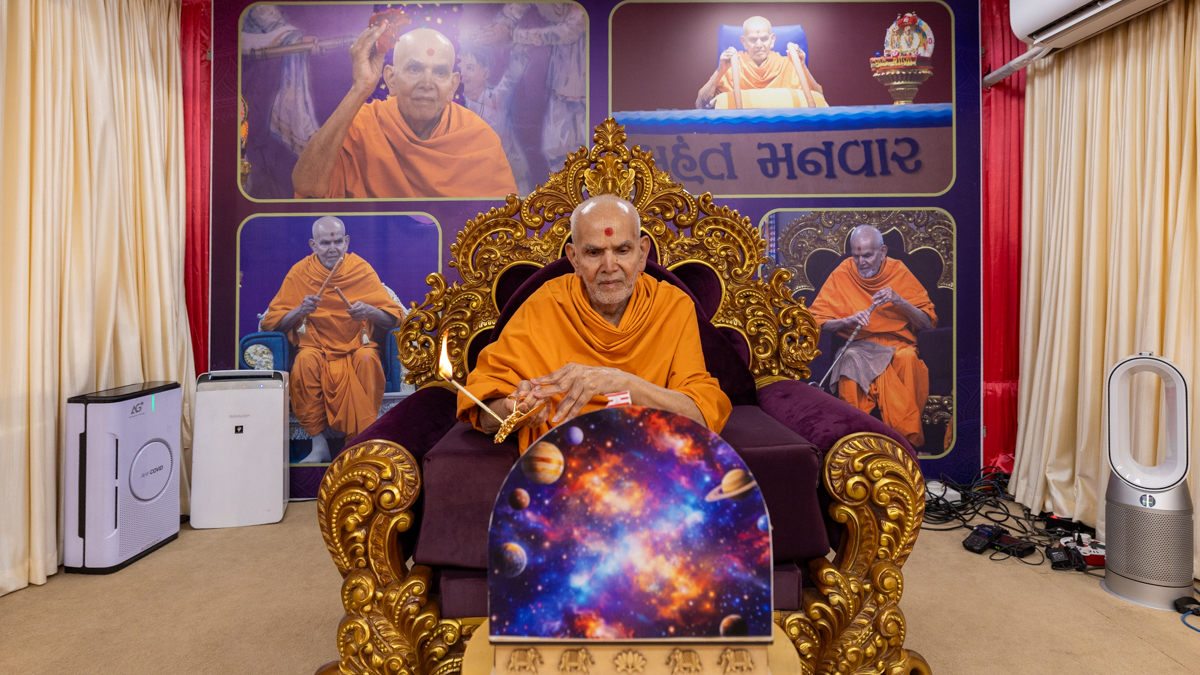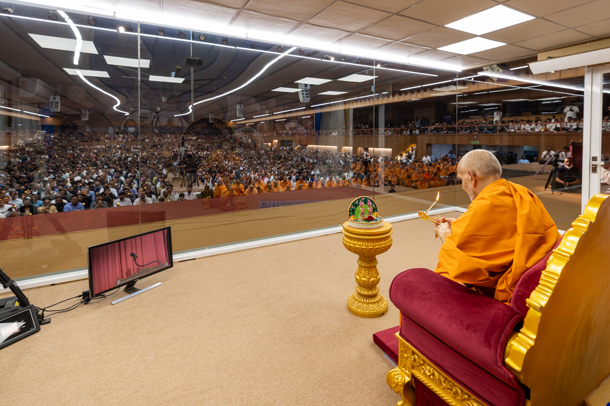 Swamishri performs the morning arti