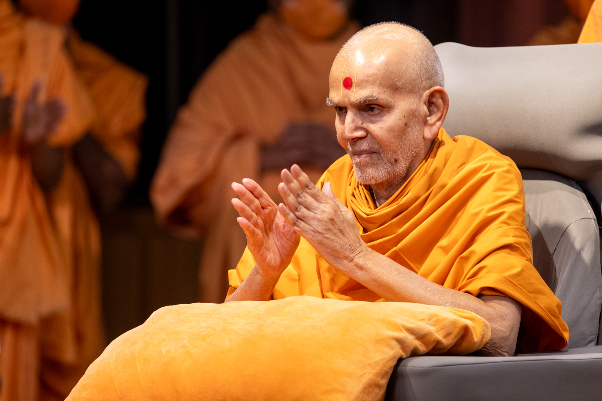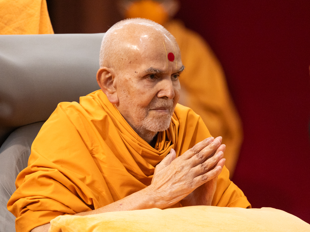 Swamishri greets all with folded hands