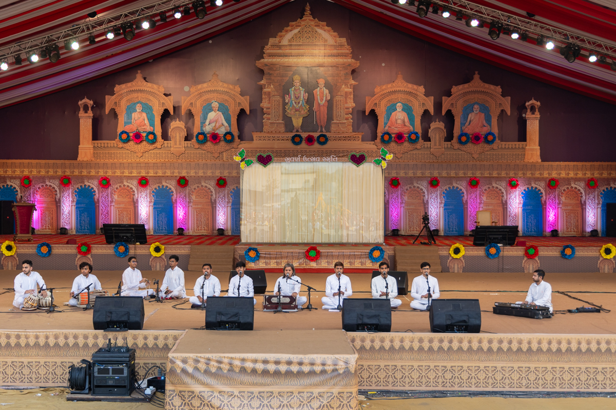 Yuvaks sing kirtans in Swamishri's daily puja