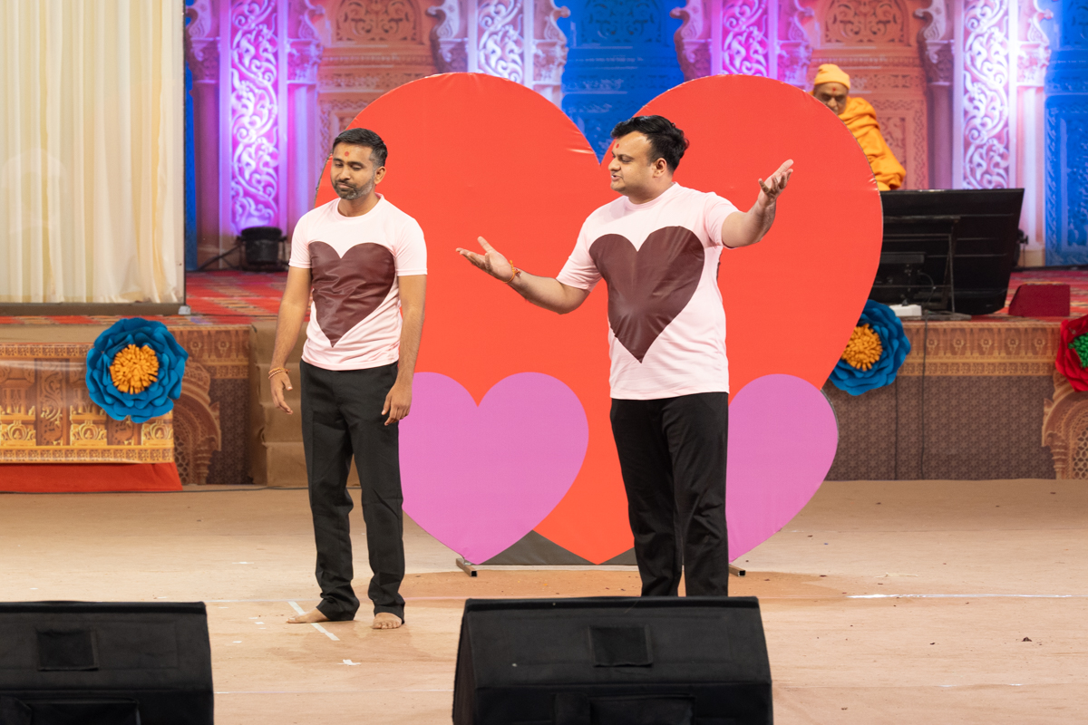 Balaks lead everyone in reciting the sadhana mantra and daily prayer in Swamishri's puja