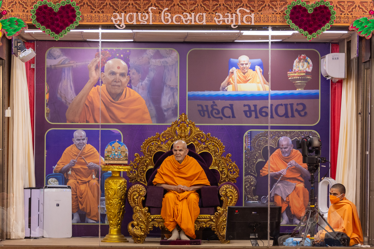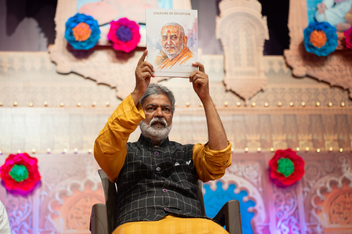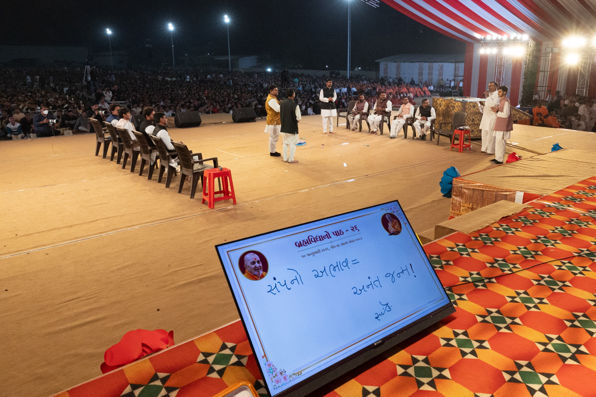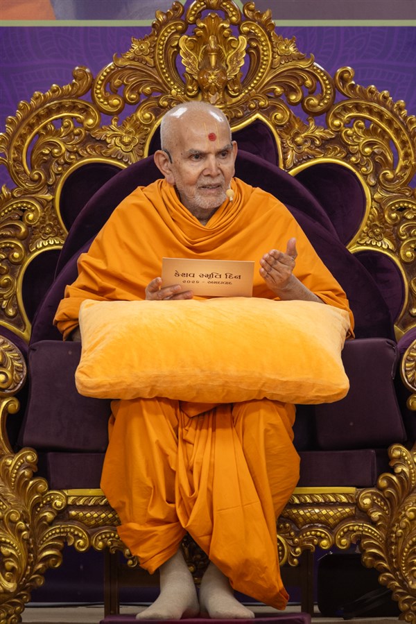 Swamishri displays a message for Dhanurmas
