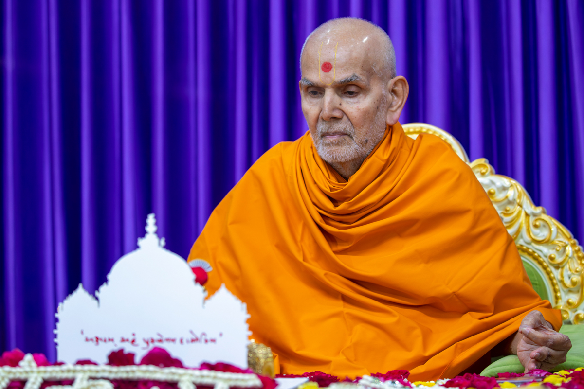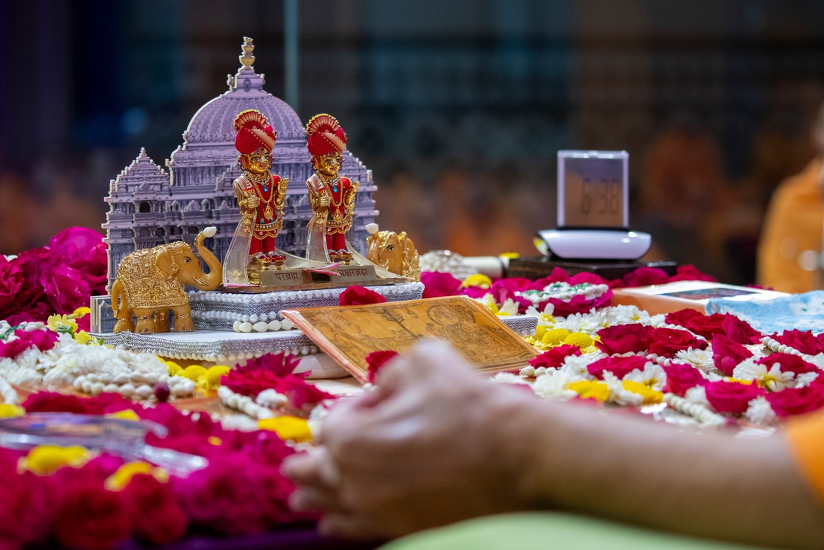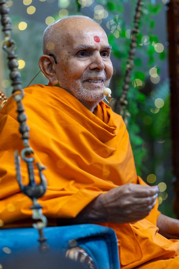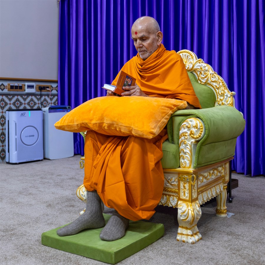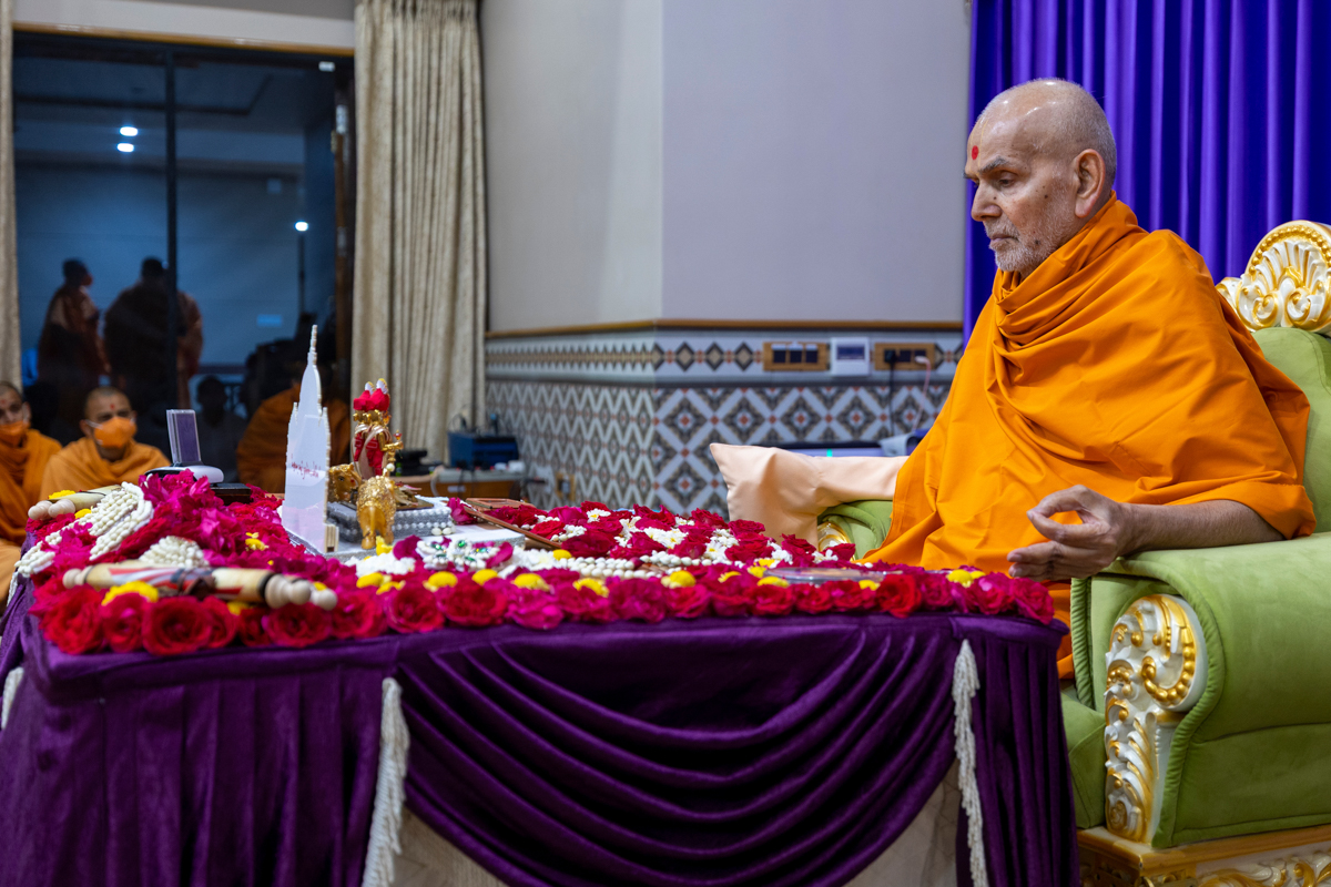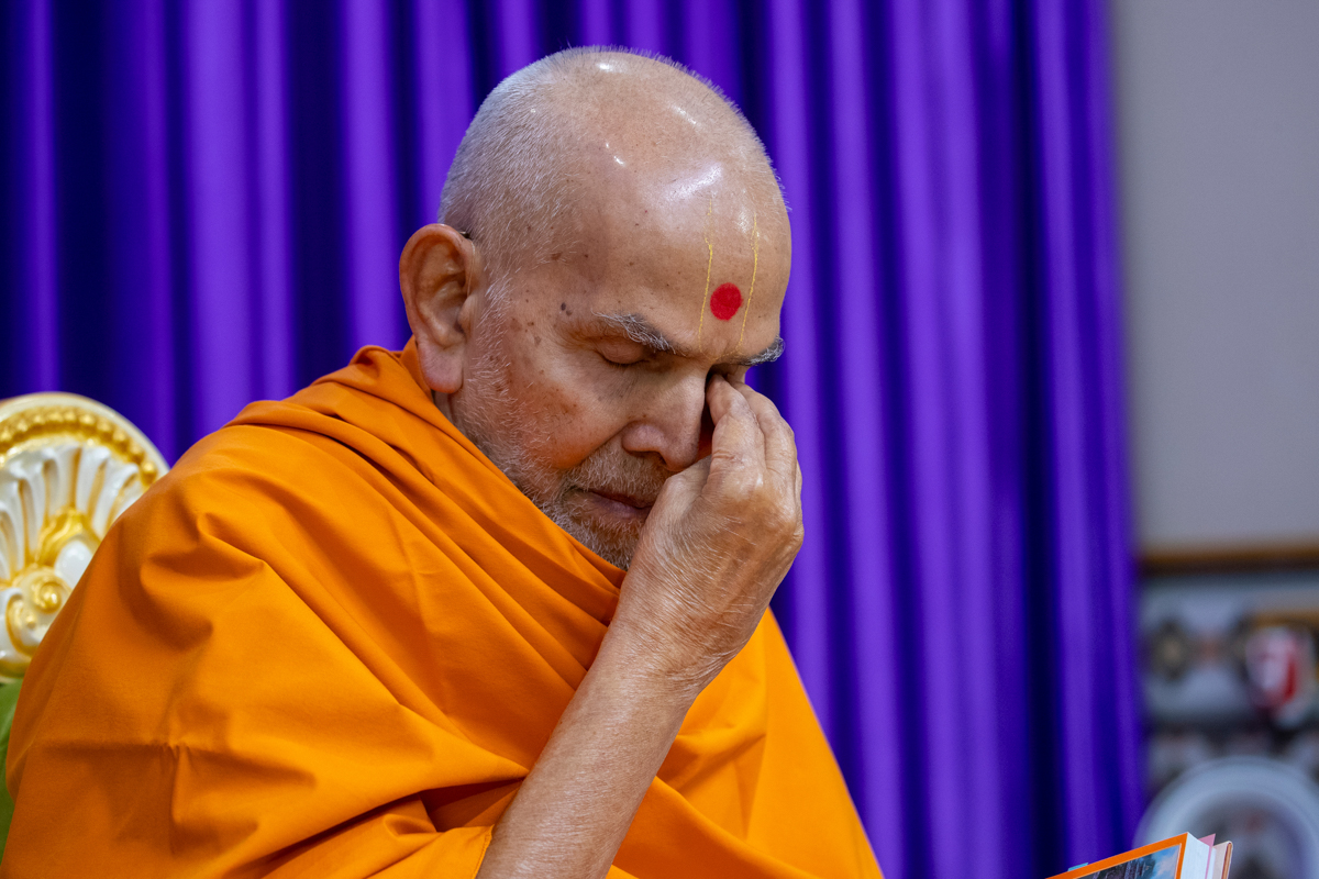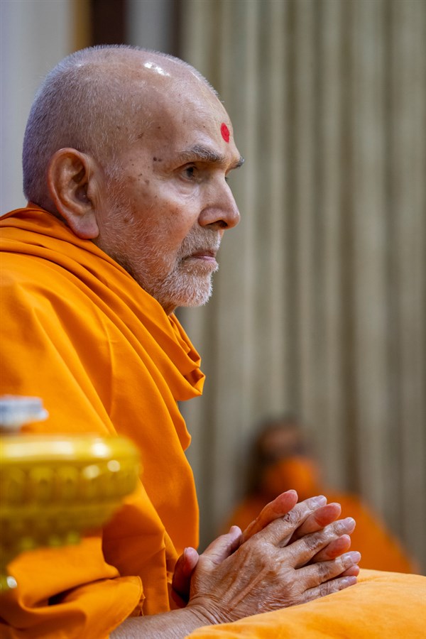 Param Pujya Mahant Swami Maharaj performs his daily puja