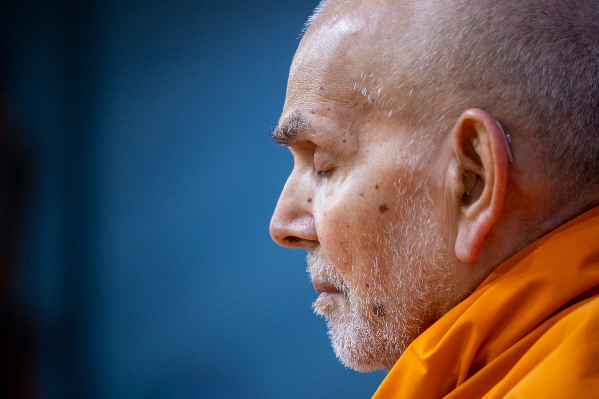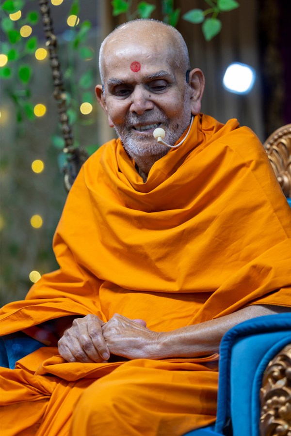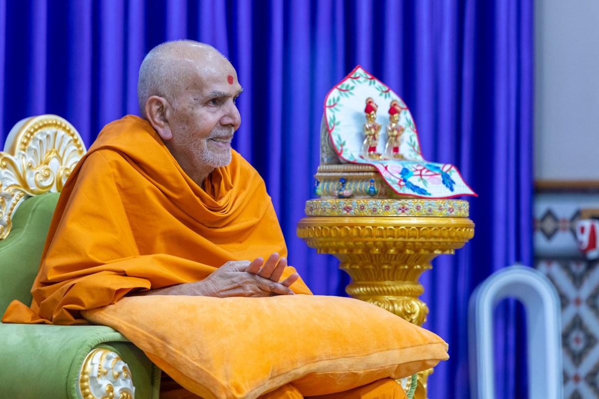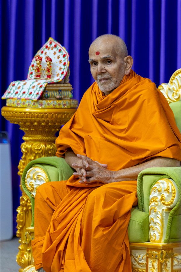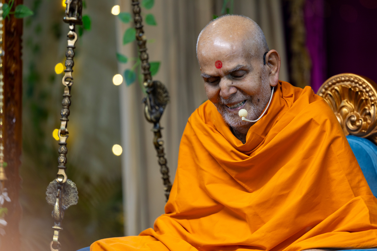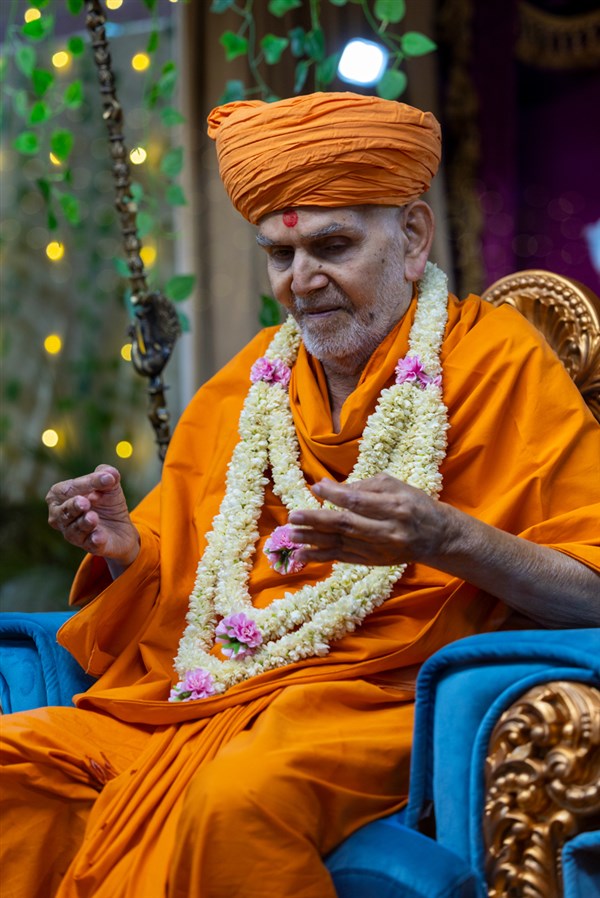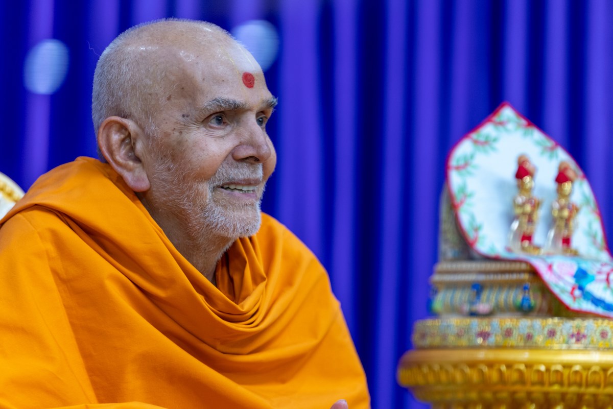 Param Pujya Mahant Swami Maharaj performs his daily puja