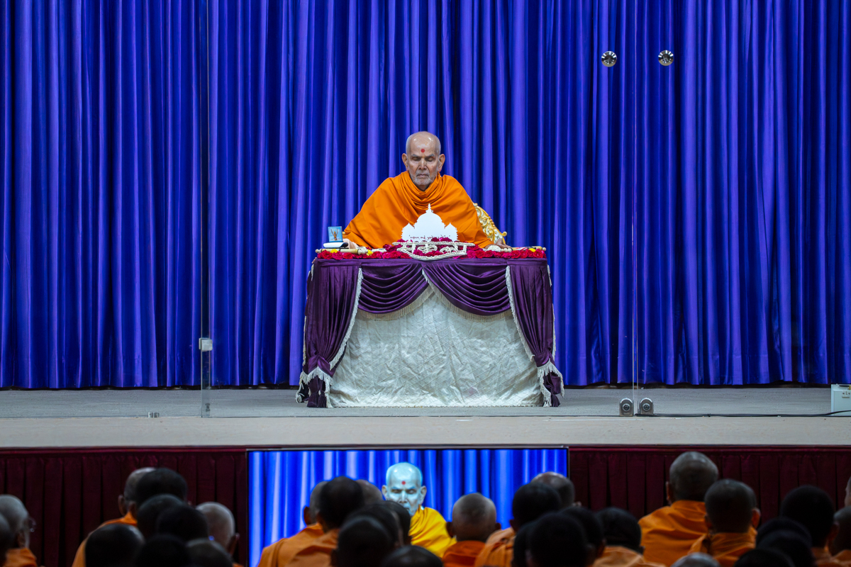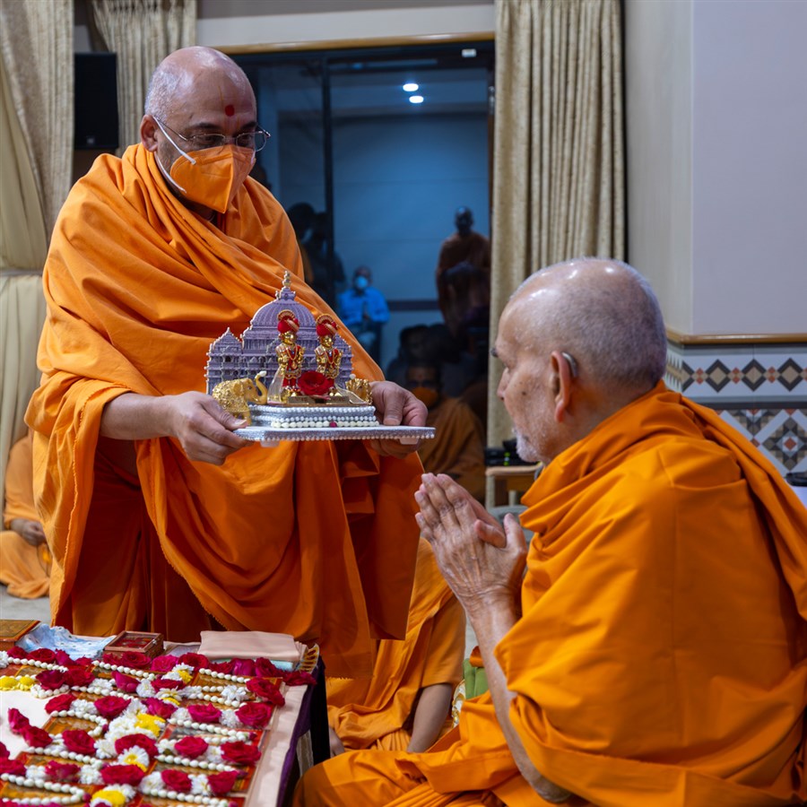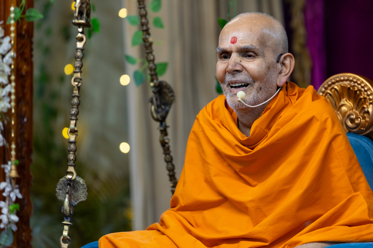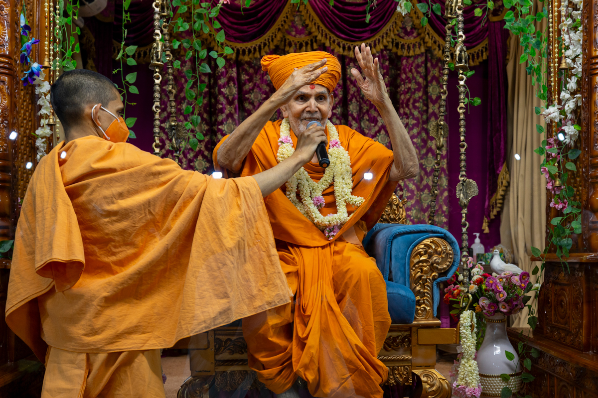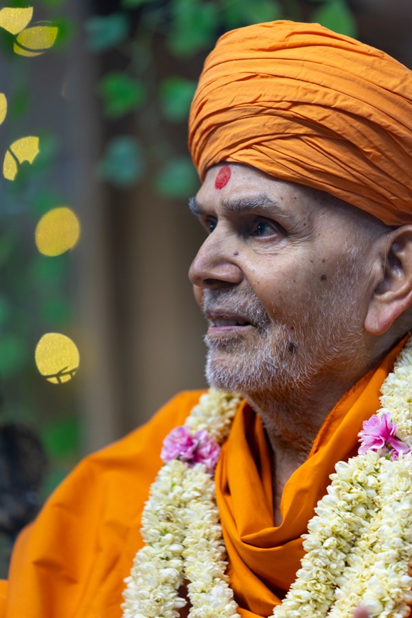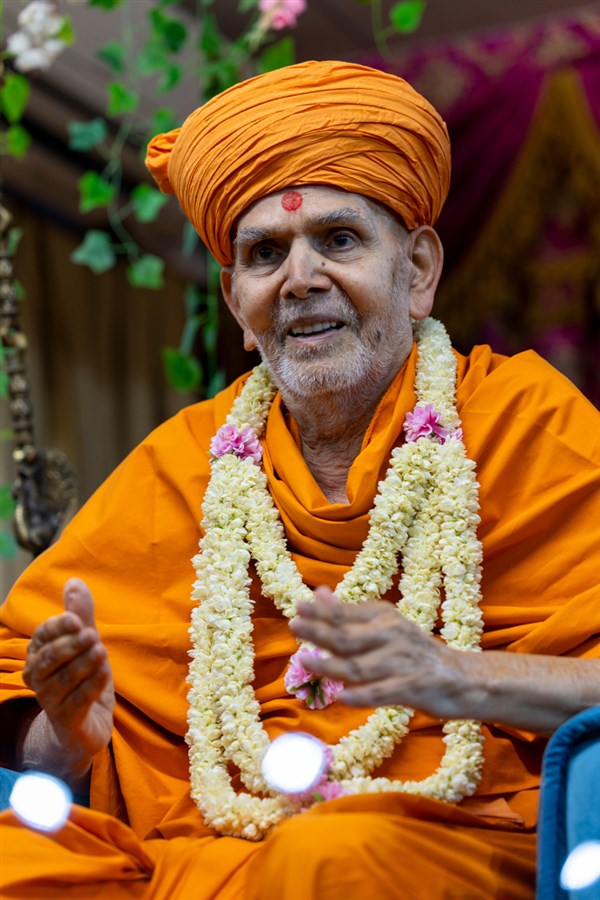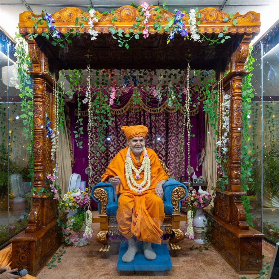 Param Pujya Mahant Swami Maharaj performs his daily puja