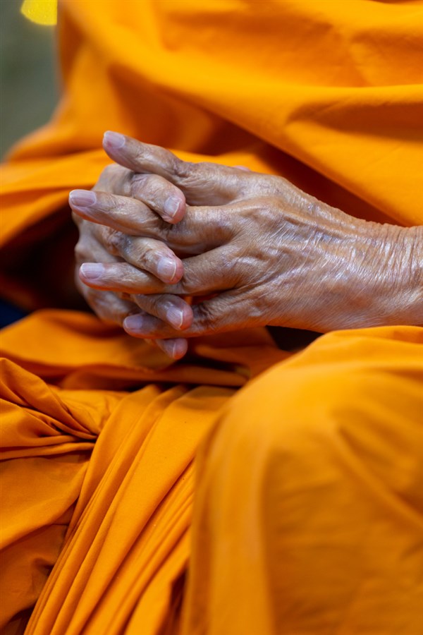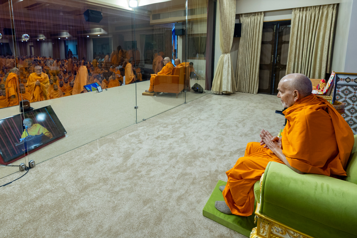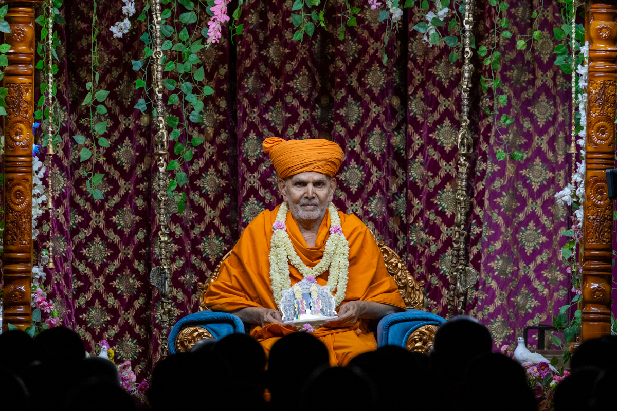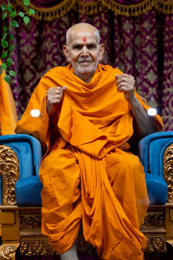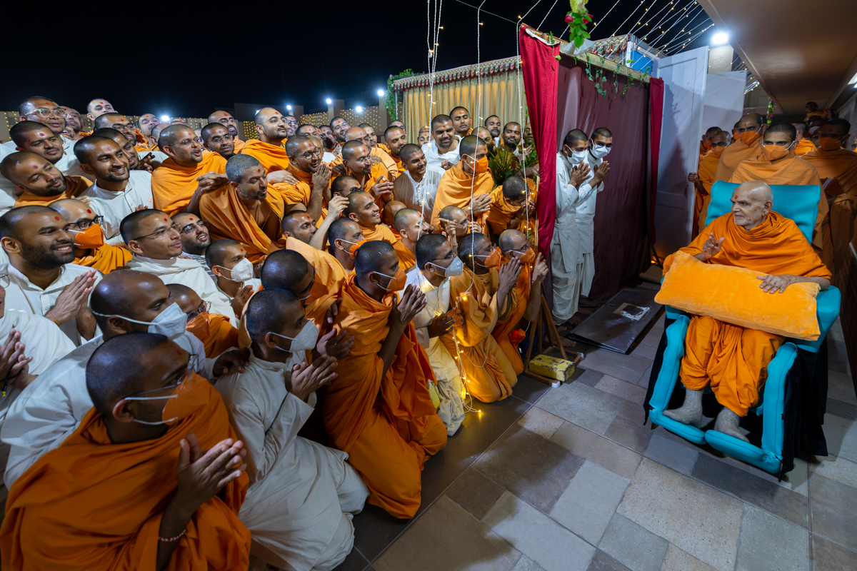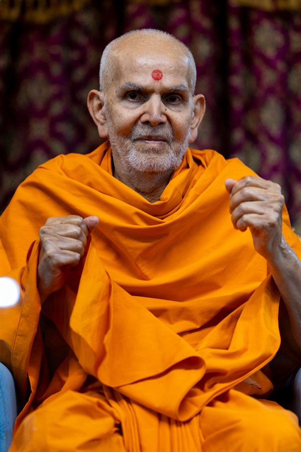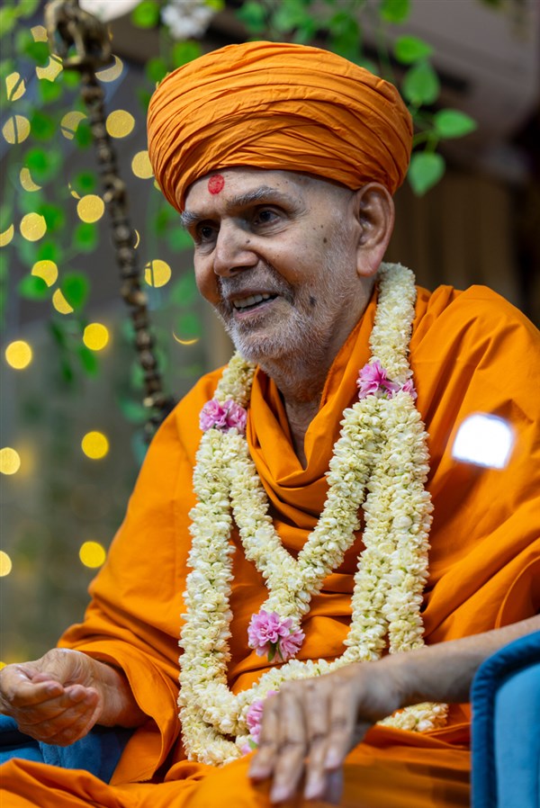 Param Pujya Mahant Swami Maharaj performs his daily puja