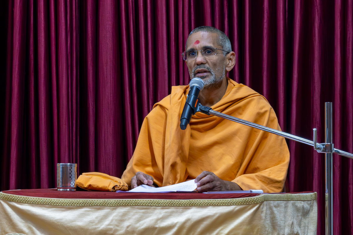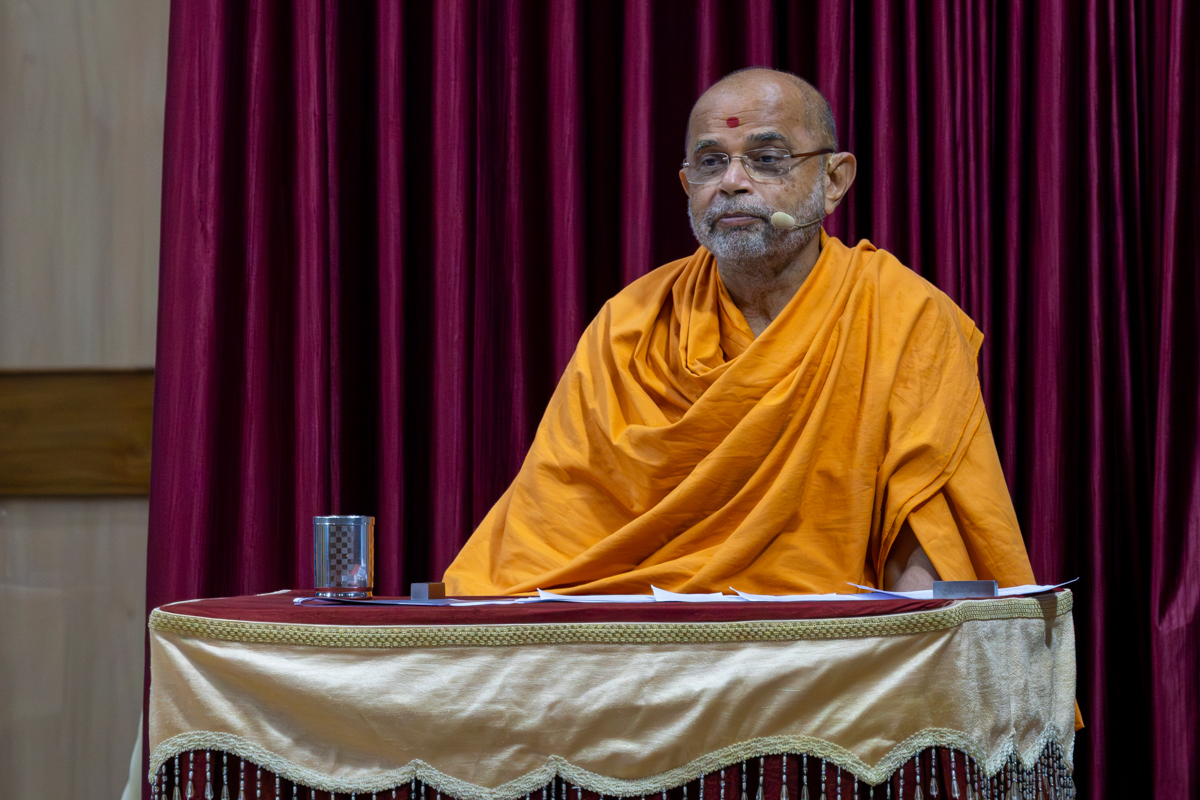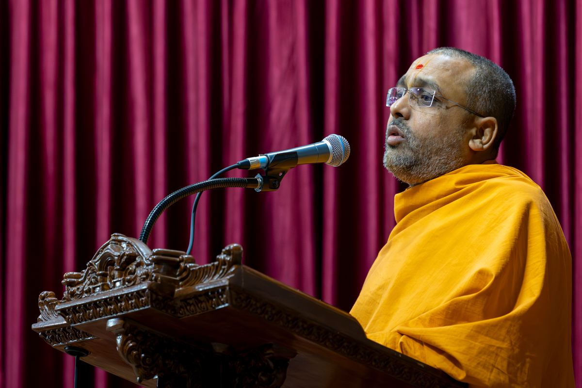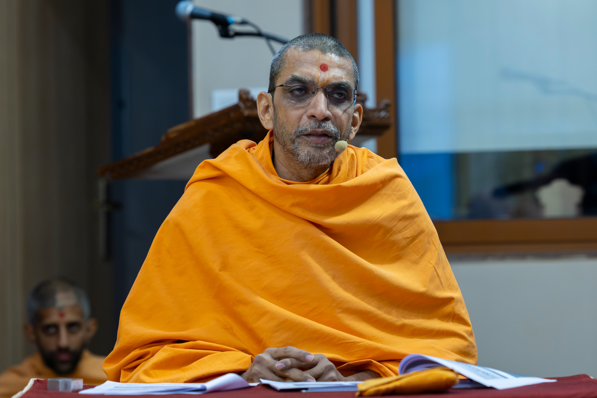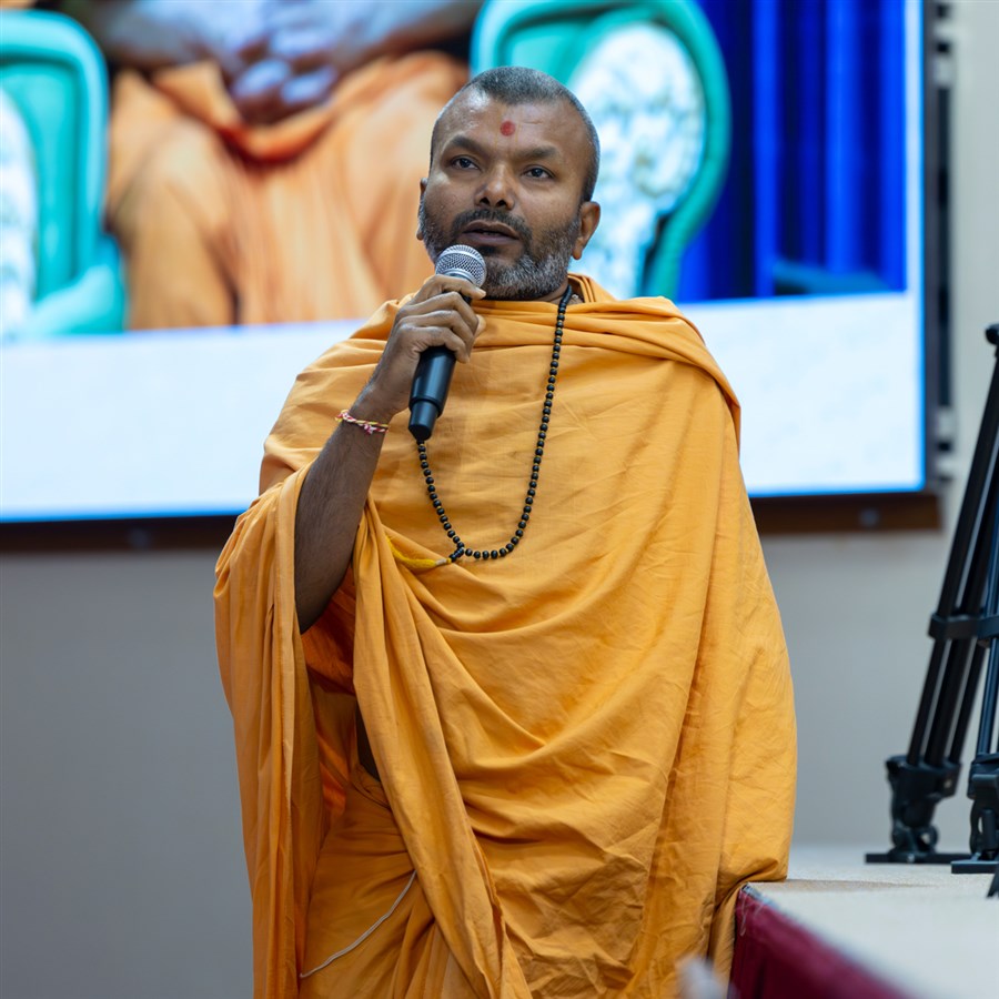 Pujya Ghanshyamcharan Swami addresses a shibir session