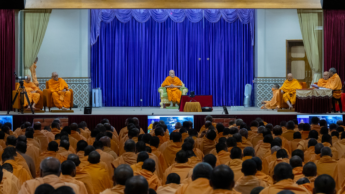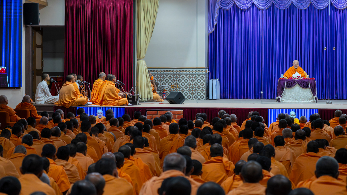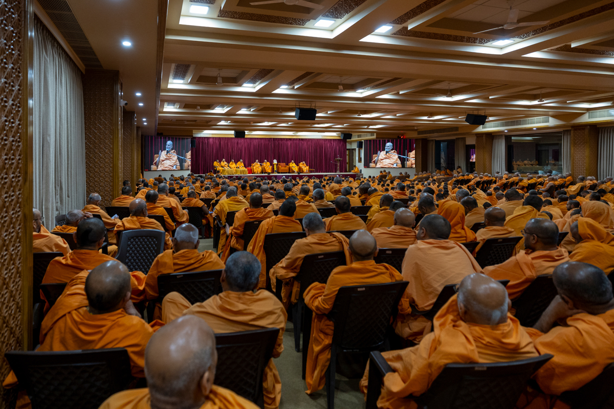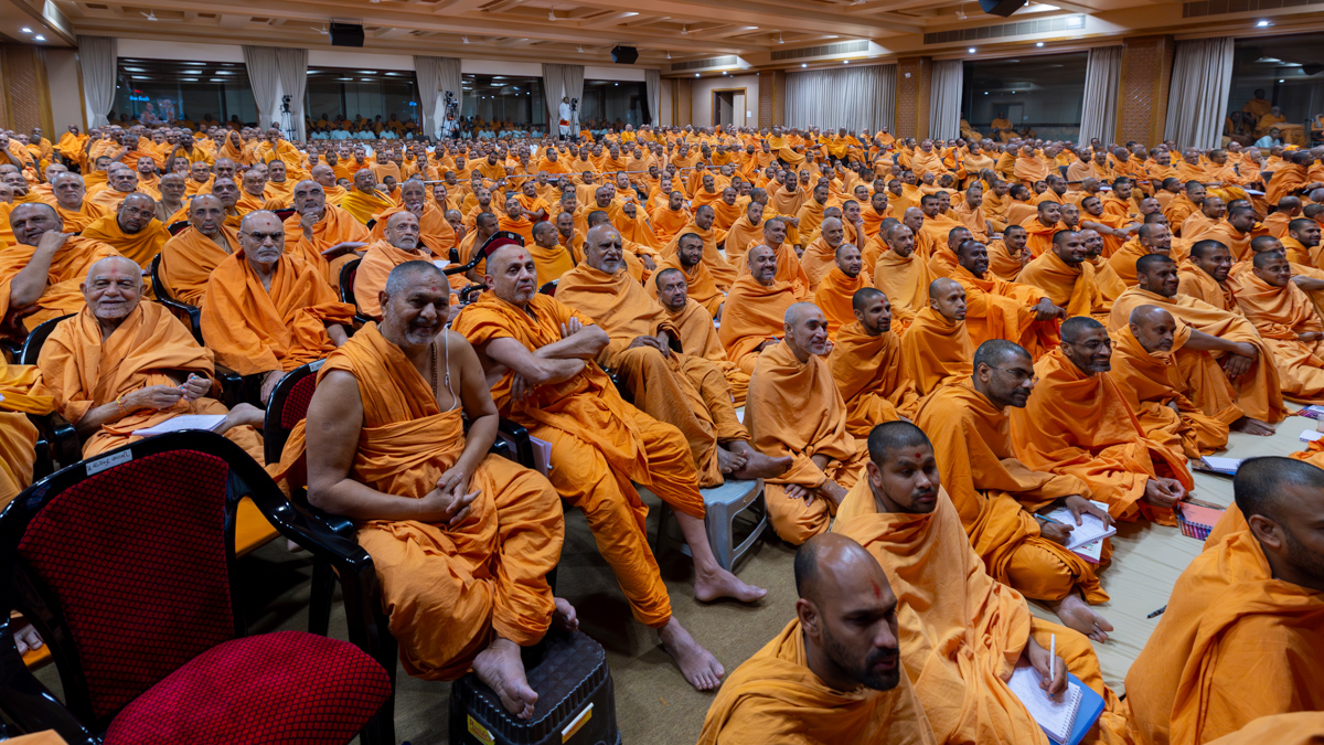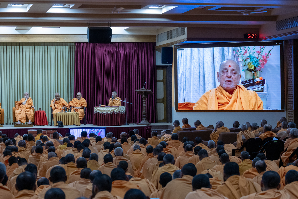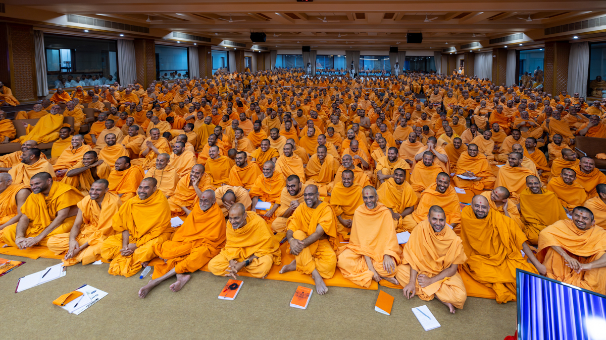 Pujya Ghanshyamcharan Swami addresses a shibir session