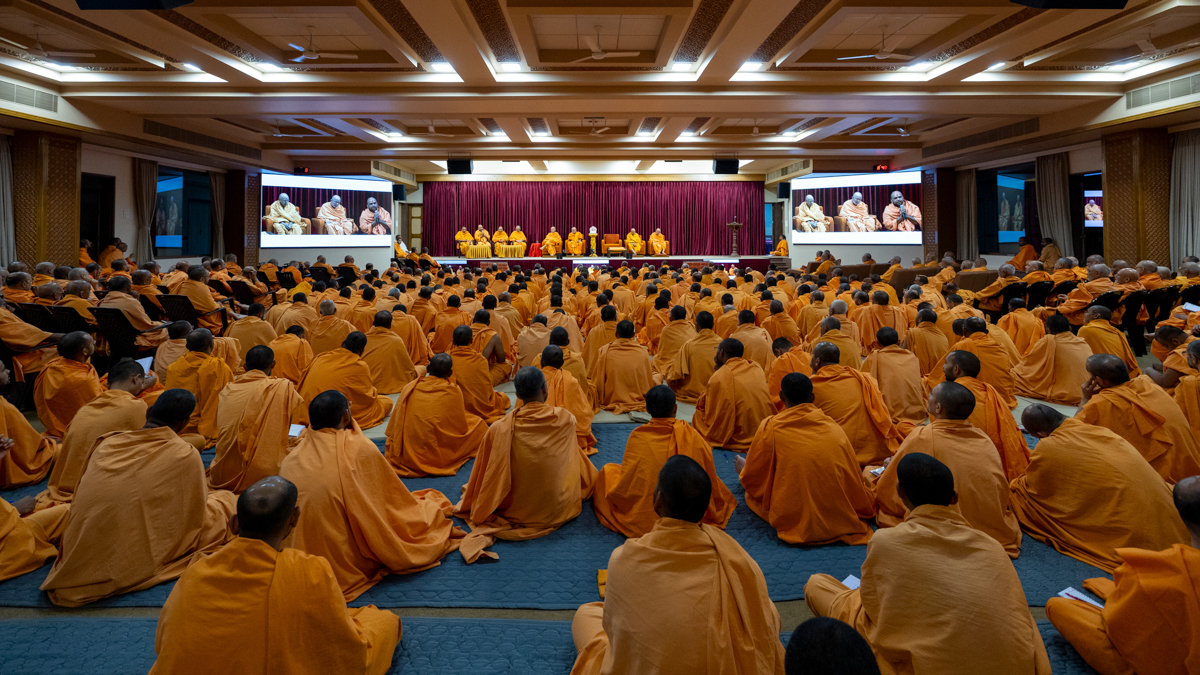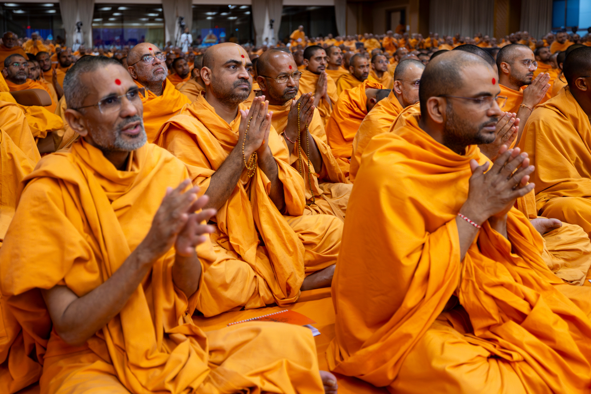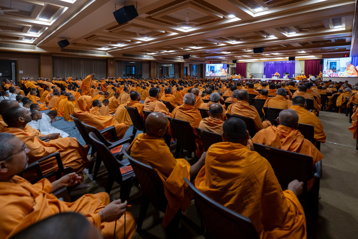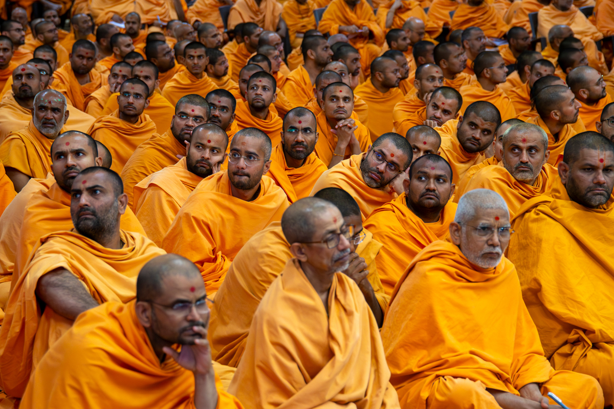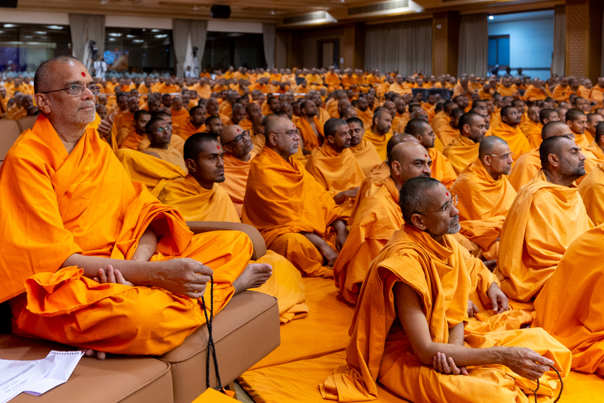 Pujya Ghanshyamcharan Swami addresses a shibir session