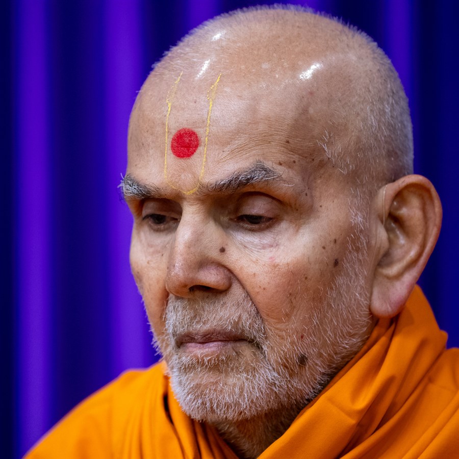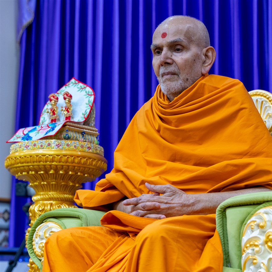 Swamishri engrossed in darshan of Shri Harikrishna Maharaj and Shri Gunatitanand Swami Maharaj