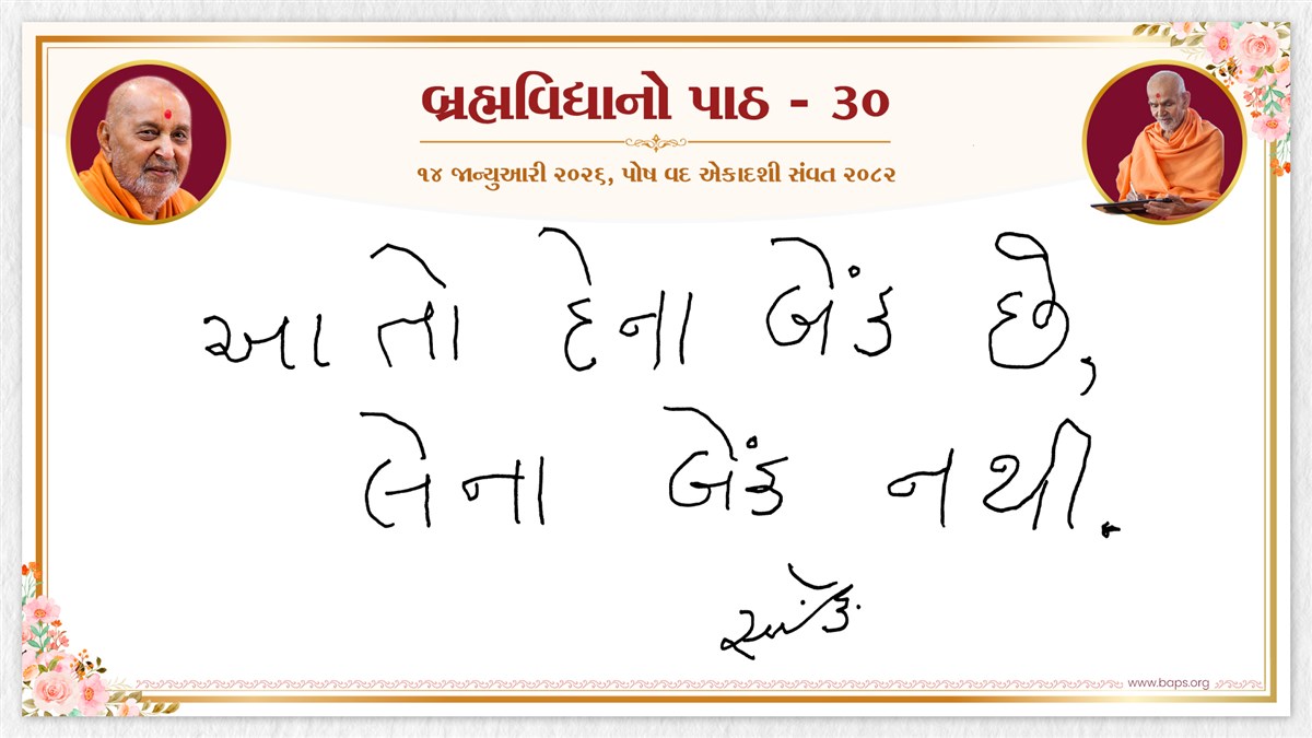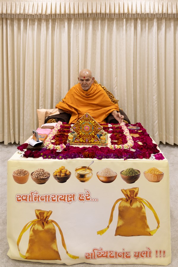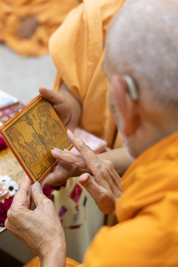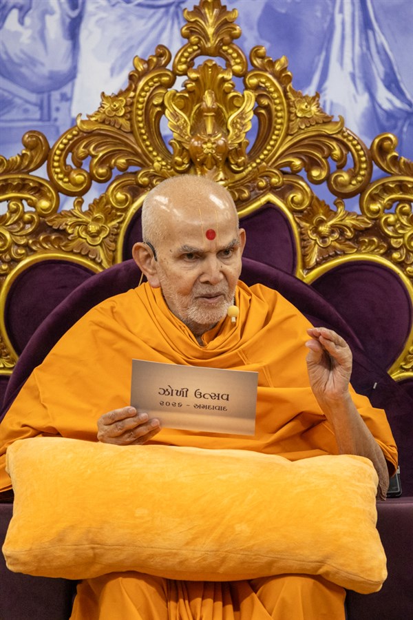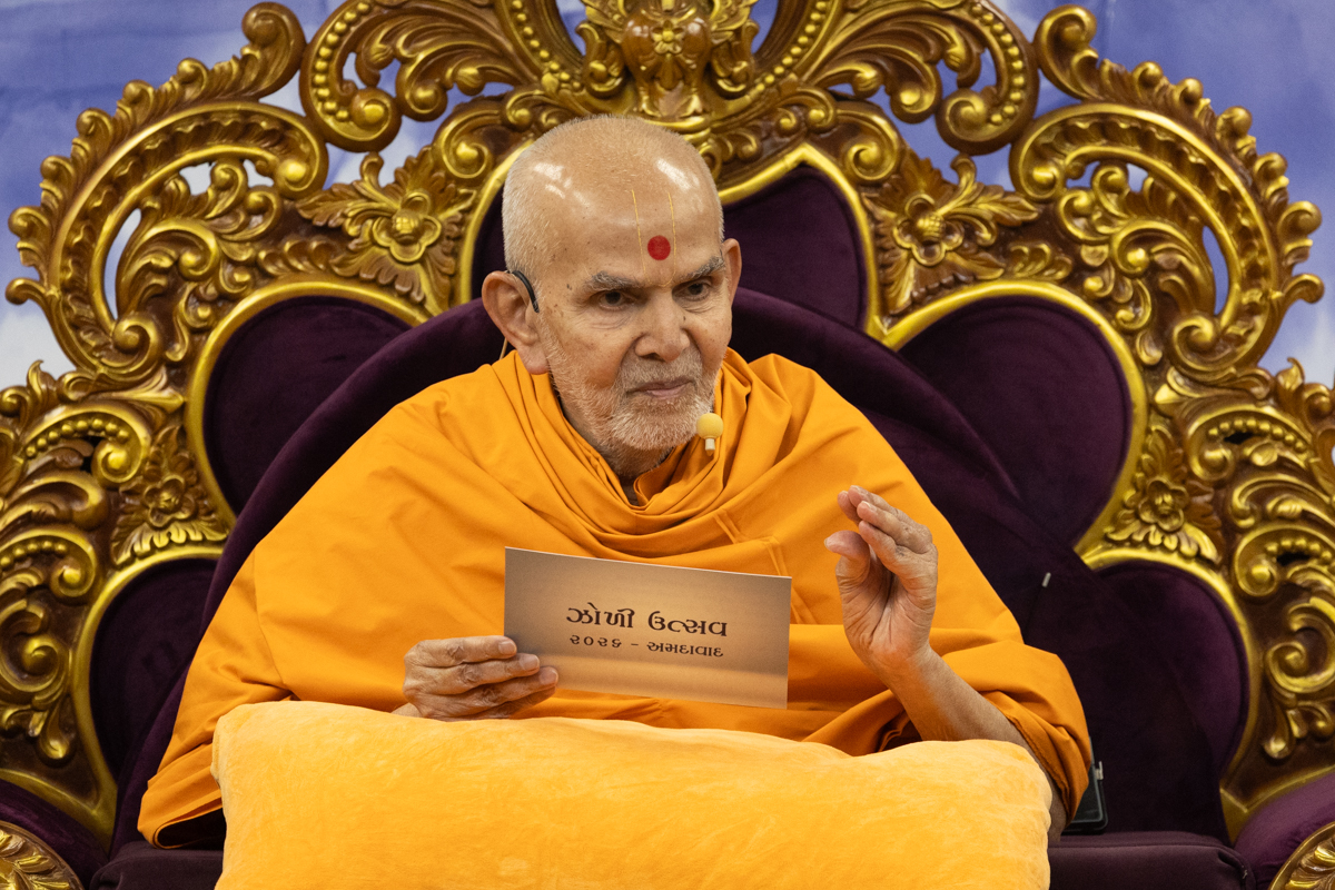 Swamishri displays a message for Dhanurmas