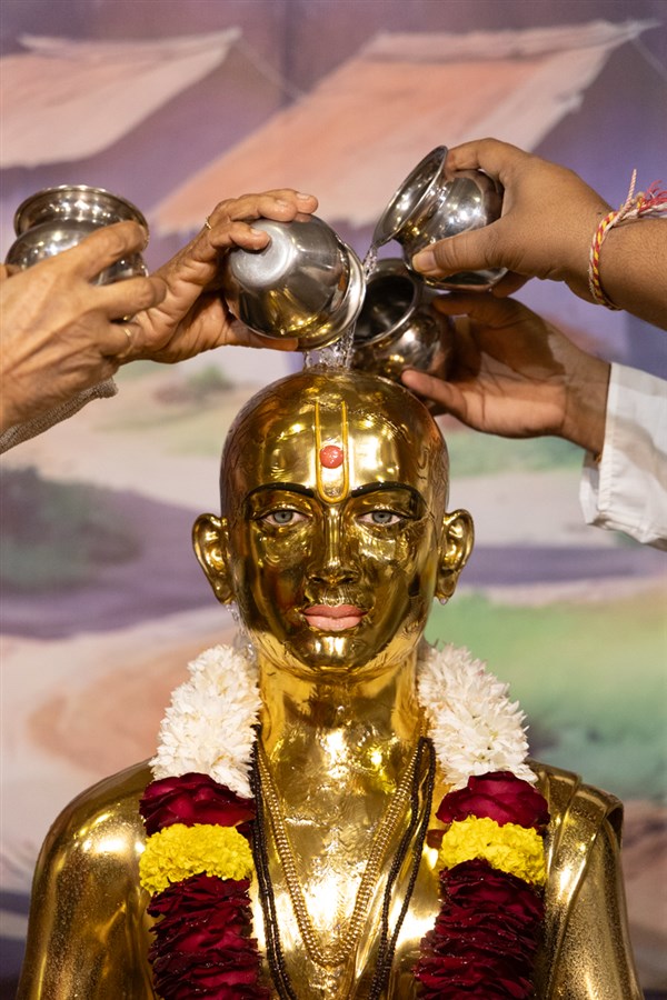 Devotees perform abhishek of Bhagwan Swaminarayan