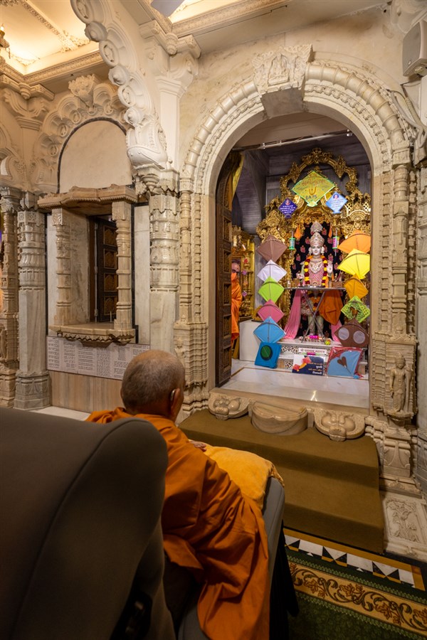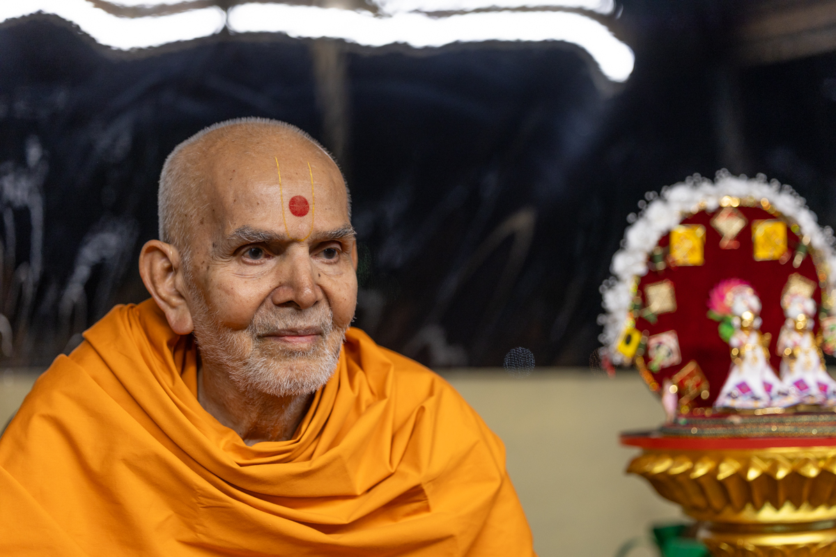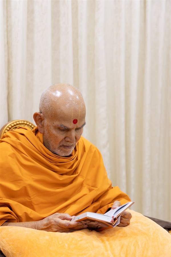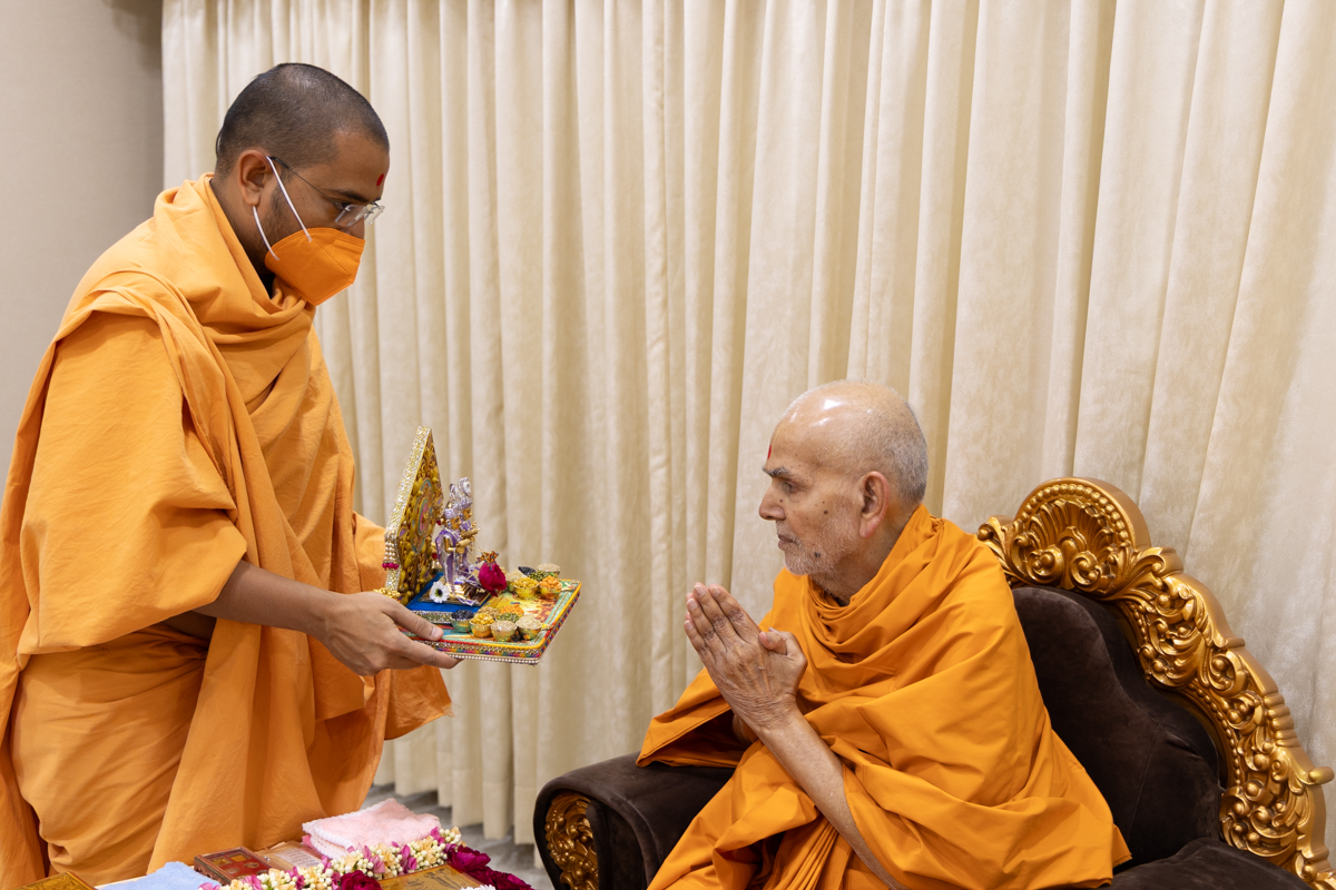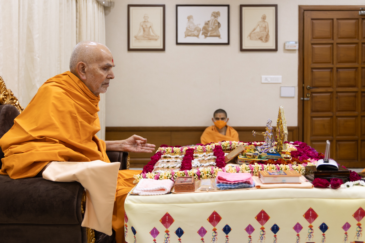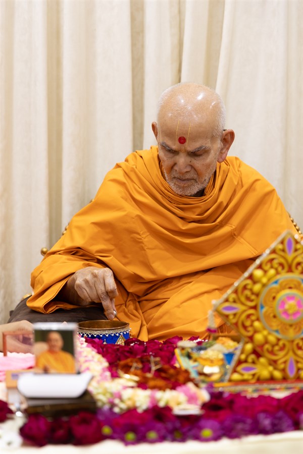 Param Pujya Mahant Swami Maharaj performs his daily puja