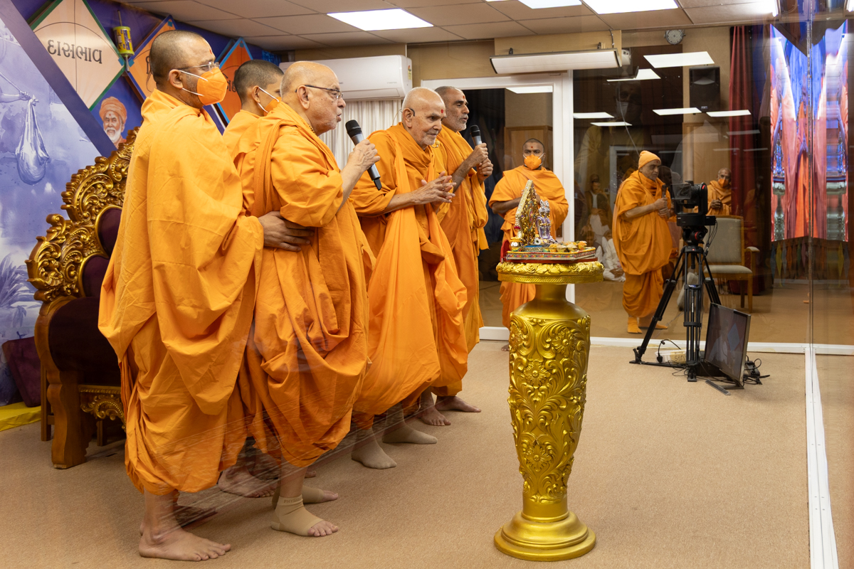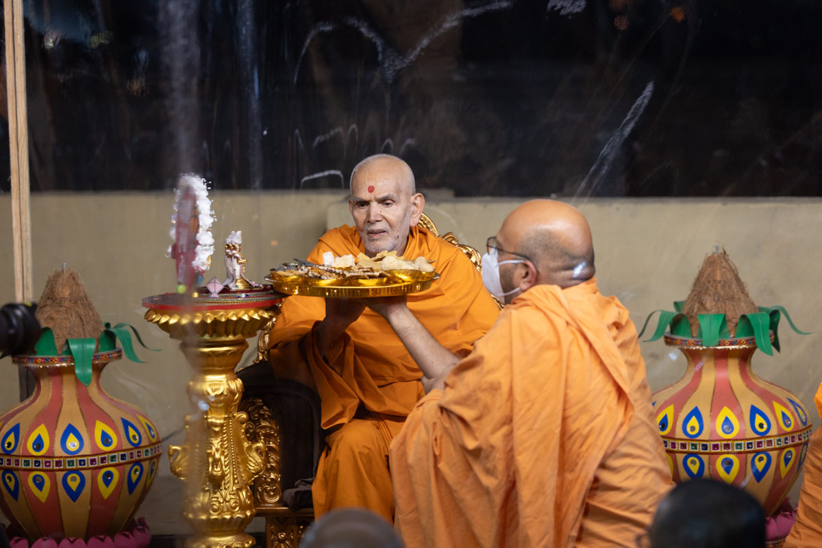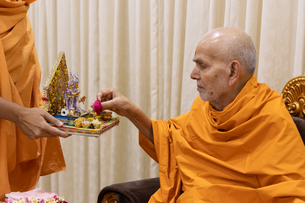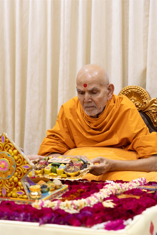 Swamishri offers thal to Thakorji