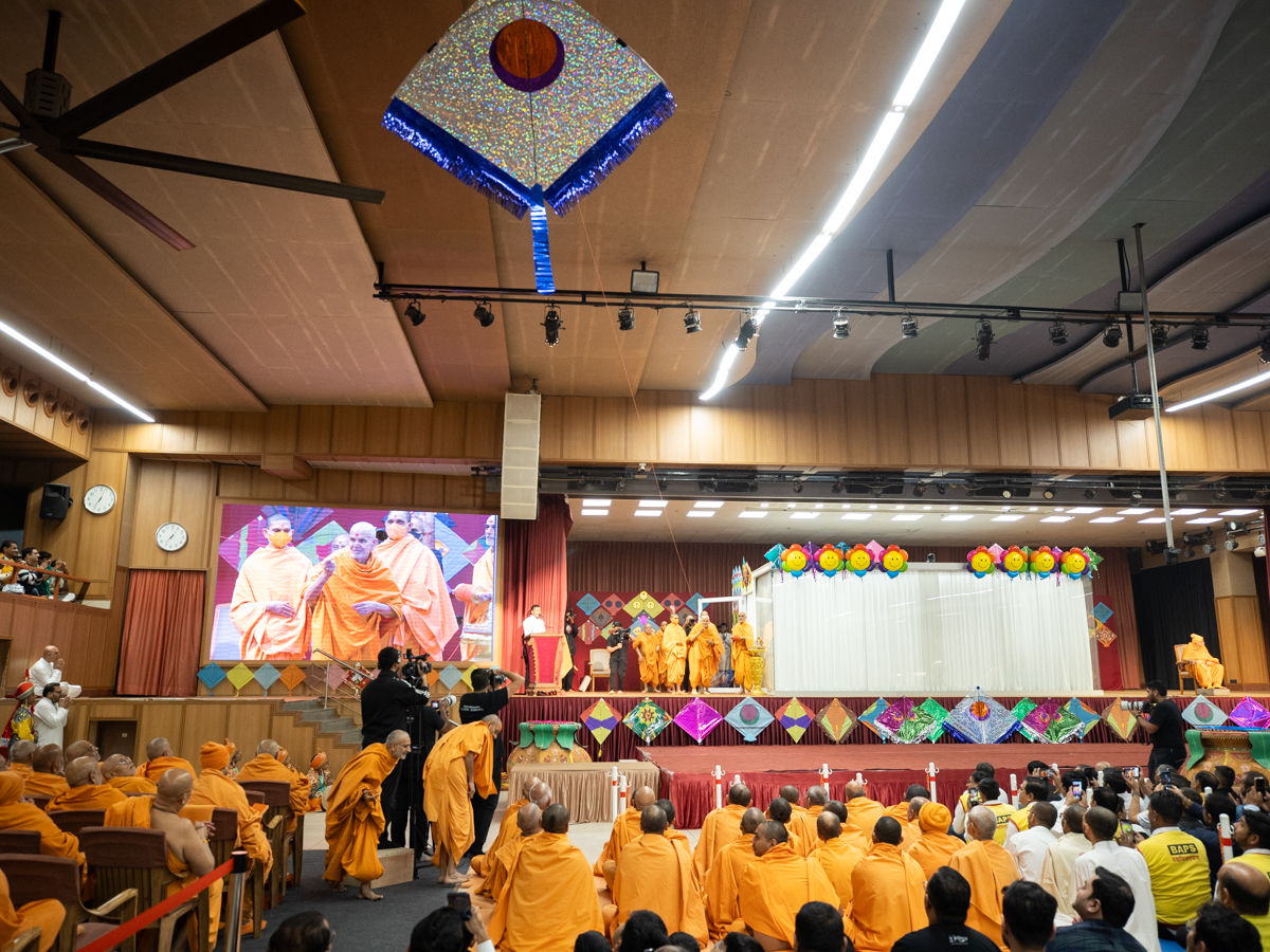 Swamishri blesses the Uttarayan-Jholi celebration assembly