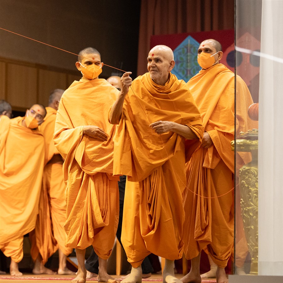 Swamis doing darshan of Swamishri